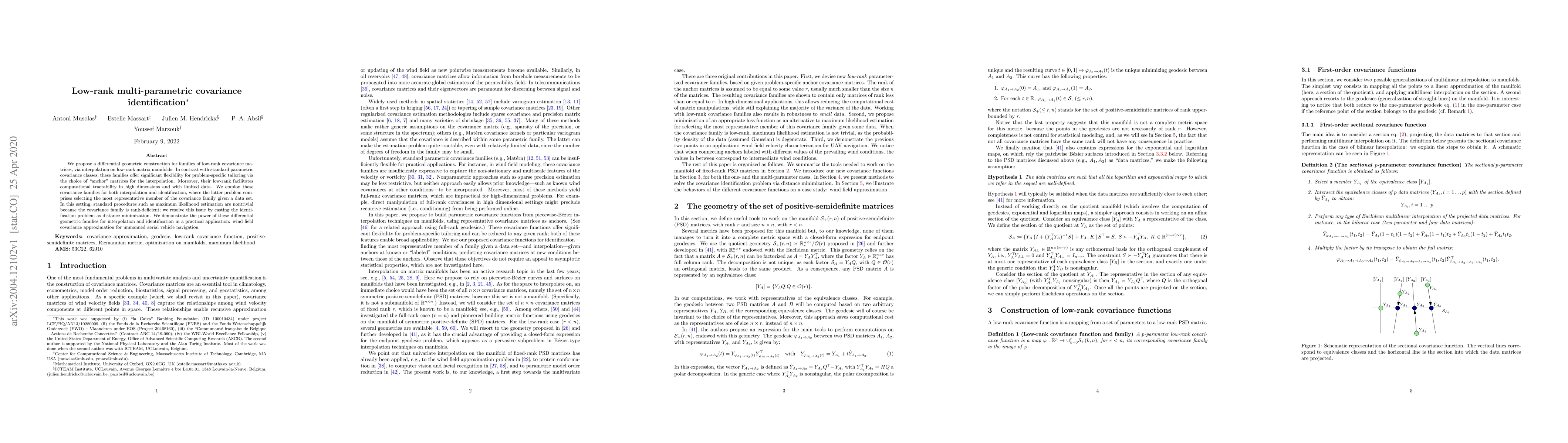 Researchers propose a new approach to estimating covariance matrices that can handle complex data sets with limited information, using differential geometry to create flexible families of low-rank matrices for improved computational efficiency.