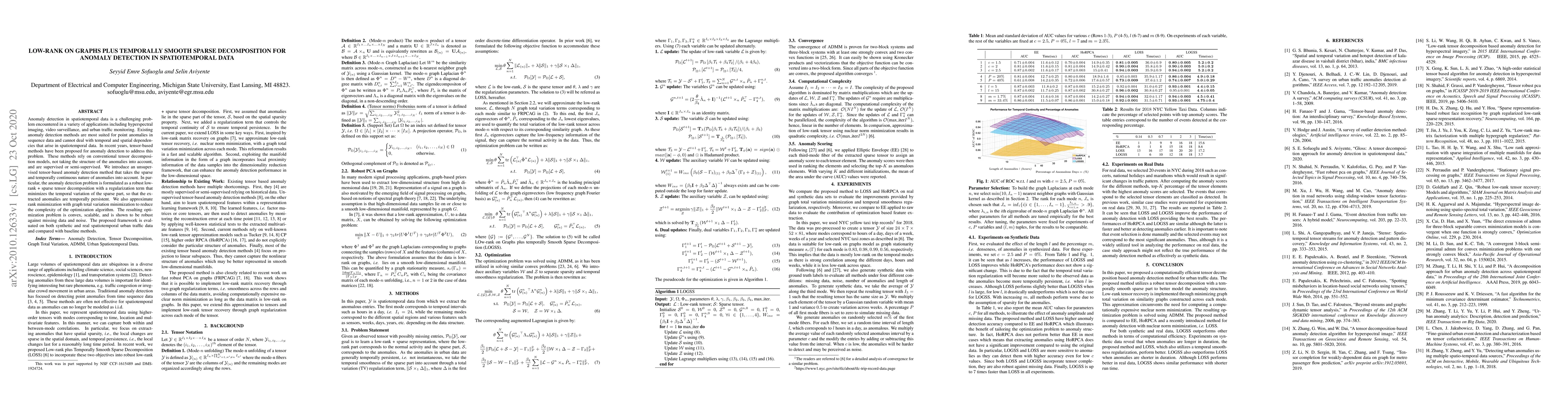 This paper presents an unsupervised tensor-based anomaly detection method for spatiotemporal data, combining low-rank decomposition with temporally smooth sparse tensor decomposition to account for anomaly persistence. The approach uses graph total variation minimization for complexity reduction and is evaluated on urban traffic data.
