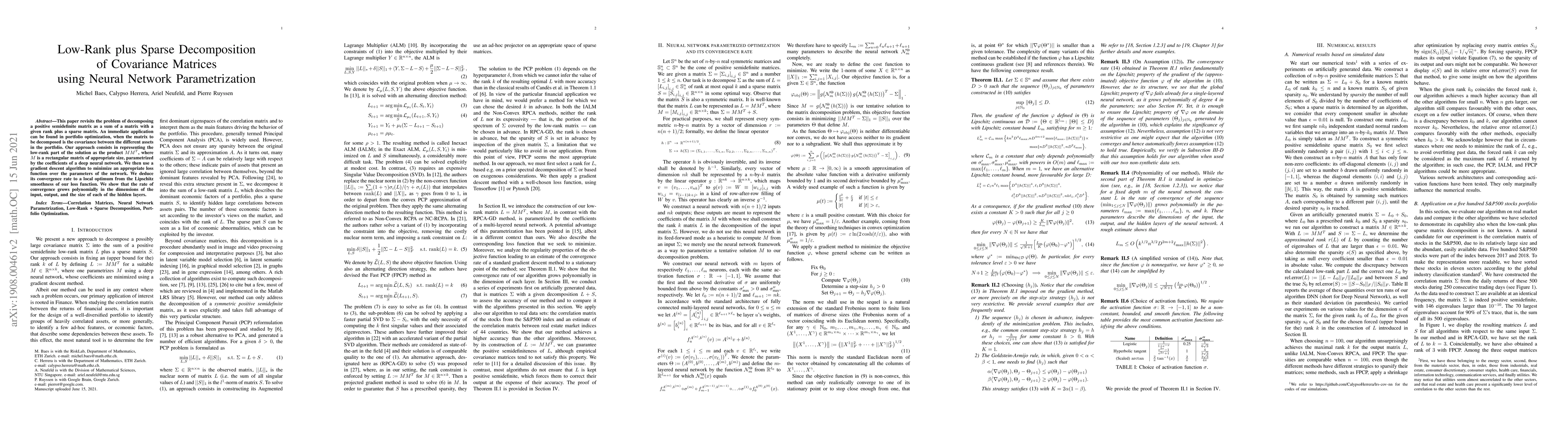 Researchers developed a new method to decompose large covariance matrices into a low-rank plus sparse part using neural networks, with applications in portfolio optimization.