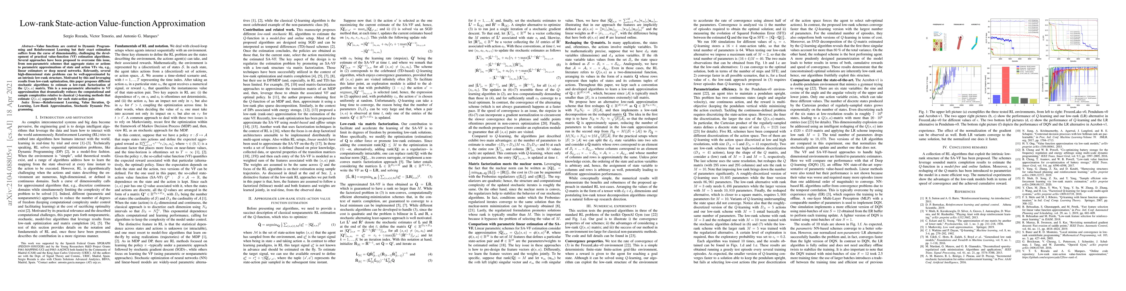 This paper proposes stochastic algorithms to estimate a low-rank factorization of the $Q(s, a)$ matrix, offering a non-parametric approach to value-function approximation that reduces computational and sample complexities compared to traditional $Q$-learning methods. The method leverages the intrinsic low-rank structure of high-dimensional state problems.
