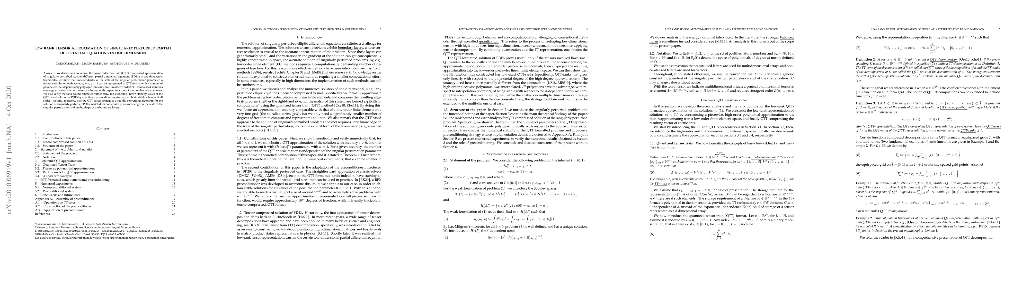 This paper develops rank bounds for quantized tensor train (QTT) compressed solutions of singularly perturbed reaction diffusion PDEs in one dimension, demonstrating that QTT solutions converge exponentially with a polylogarithmic dependence on accuracy. The authors also address stability issues by employing a preconditioning strategy, confirming the rapid convergence of the QTT method without prior knowledge of perturbation scale or boundary layer shape.
