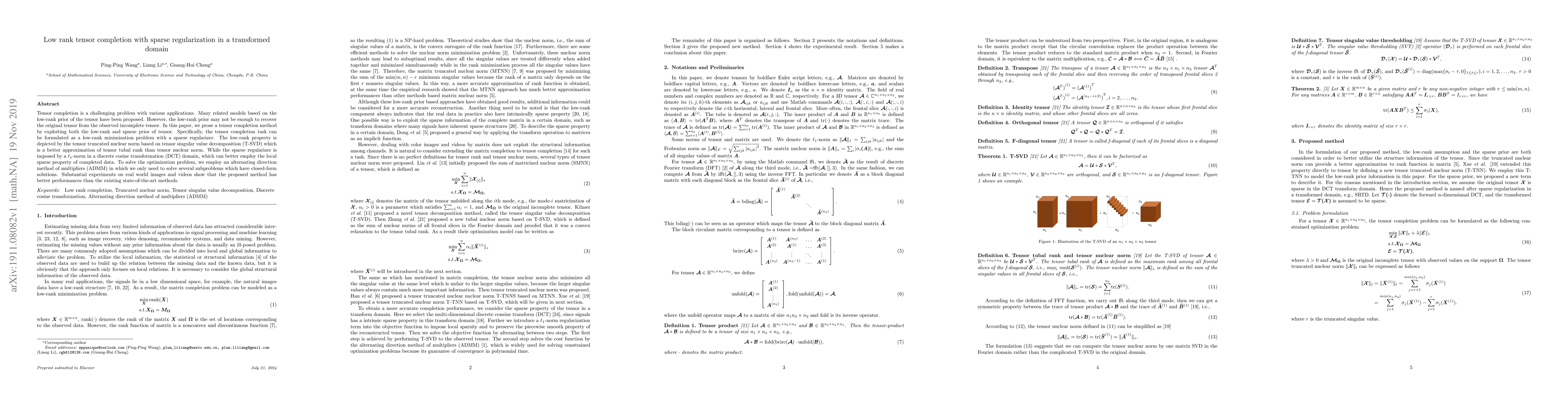 This paper proposes a tensor completion method that leverages both the low-rank and sparse properties of tensors. It uses the tensor truncated nuclear norm for low-rank approximation and an $\ell_{1}$-norm in the DCT domain for sparse regularization, solved via an ADMM approach, demonstrating superior performance on real-world image and video data.