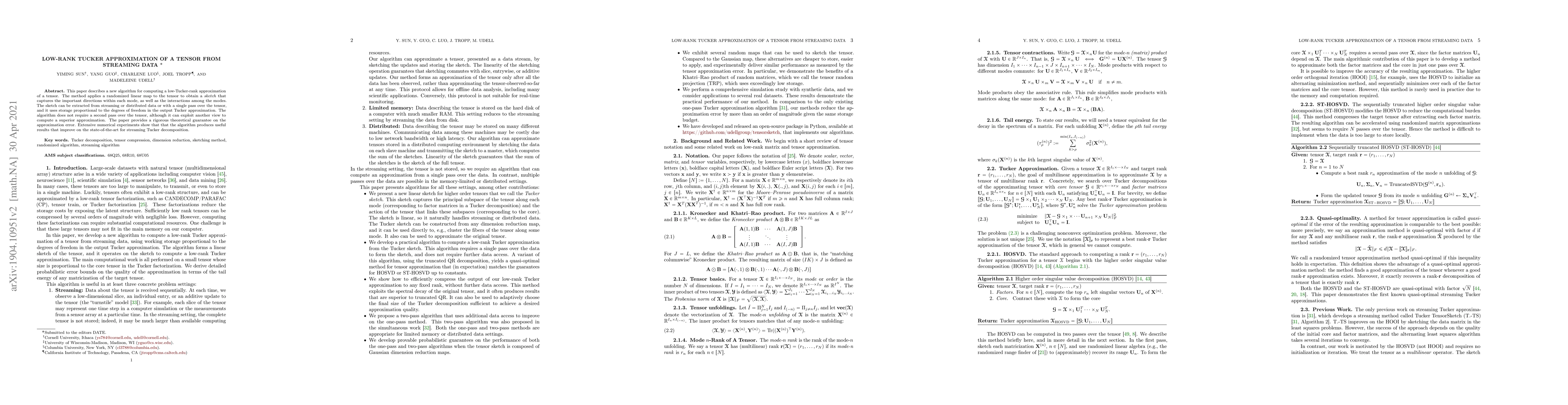 This paper introduces an efficient algorithm for computing a low-Tucker-rank approximation of tensors using a randomized linear map, suitable for streaming or distributed data. It provides a theoretical guarantee on approximation error and outperforms existing methods in numerical experiments.