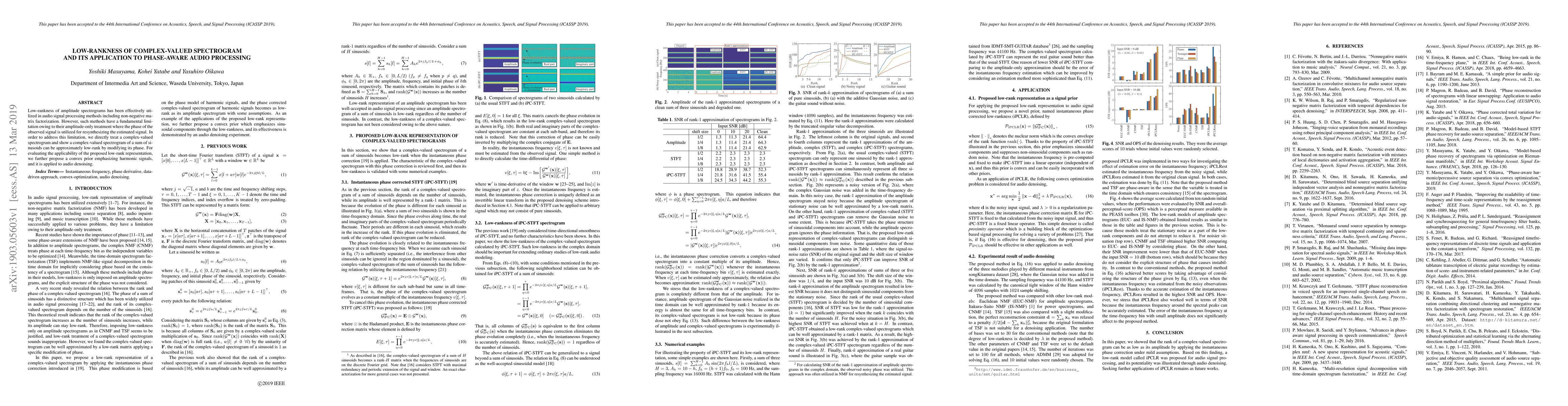 Researchers show that complex-valued spectrograms can be low-rank by modifying their phase, allowing for more accurate audio processing methods like denoising.