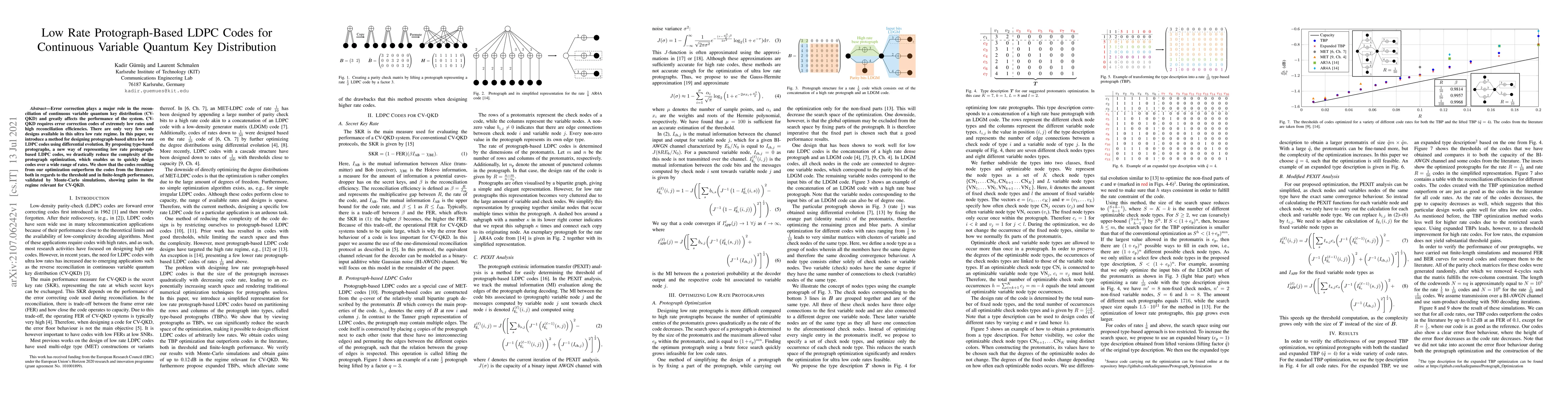 This paper presents a novel method for designing ultra low rate protograph-based LDPC codes using differential evolution, significantly reducing optimization complexity. The proposed type-based protographs enable the quick design of codes over various rates, outperforming existing codes in both threshold and finite-length performance for continuous variable quantum key distribution.