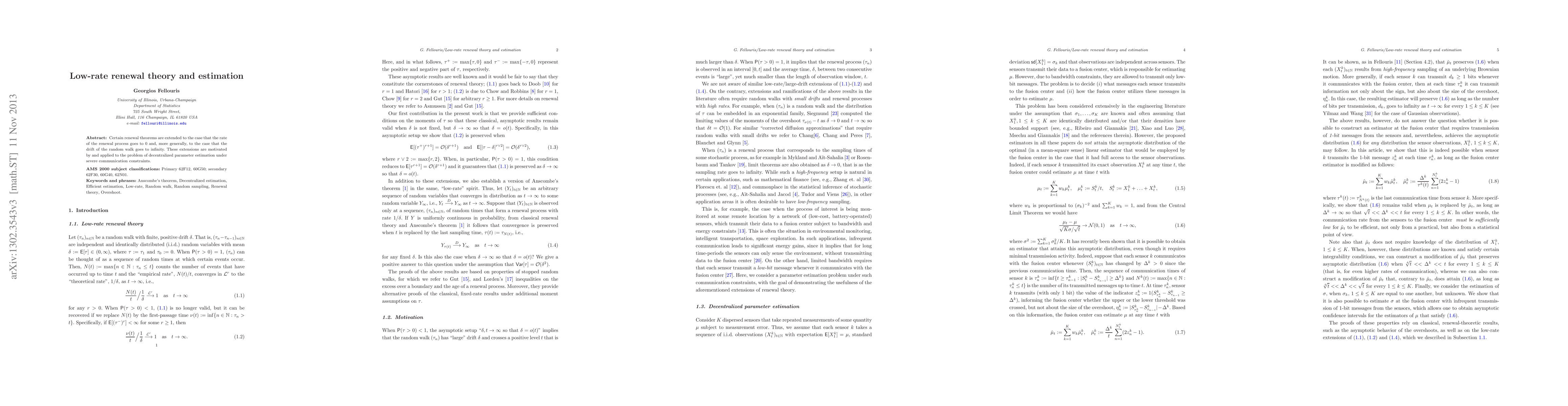 Researchers extend renewal theory to handle low rates of renewal processes with infinite drift, enabling decentralized parameter estimation under severe communication constraints. This extension has significant implications for optimizing distributed systems in resource-constrained environments.