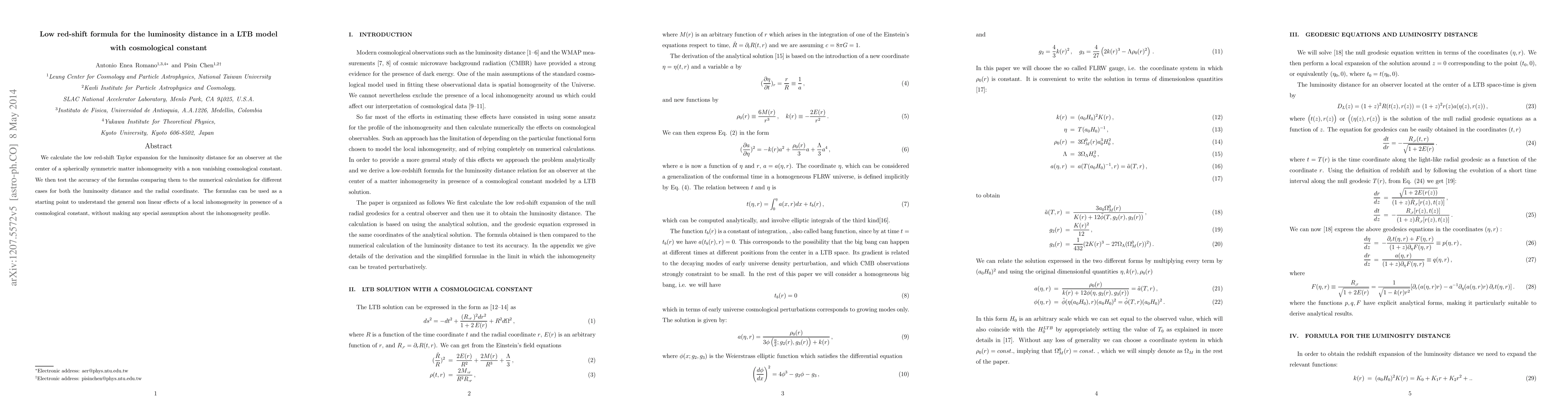 This paper derives a low red-shift formula for the luminosity distance in a spherically symmetric matter inhomogeneity with a cosmological constant, and tests its accuracy against numerical calculations. The derived formulas serve as a basis for understanding non-linear effects of local inhomogeneities in the presence of a cosmological constant.