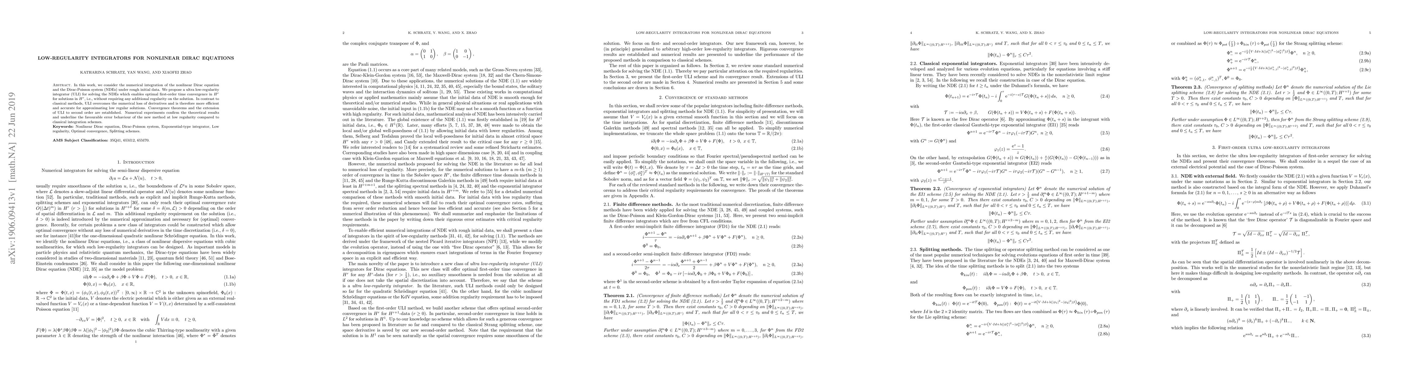 In this work, we consider the numerical integration of the nonlinear Dirac equation and the Dirac-Poisson system (NDEs) under rough initial data. We propose a ultra low-regularity integrator (ULI) for solving the NDEs which enables optimal first-order time convergence in $H^r$ for solutions in $H^{r}$, i.e., without requiring any additional regularity on the solution. In contrast to classical methods, ULI overcomes the numerical loss of derivatives and is therefore more efficient and accurate for approximating low regular solutions. Convergence theorems and the extension of ULI to second order are established. Numerical experiments confirm the theoretical results and underline the favourable error behaviour of the new method at low regularity compared to classical integration schemes.
