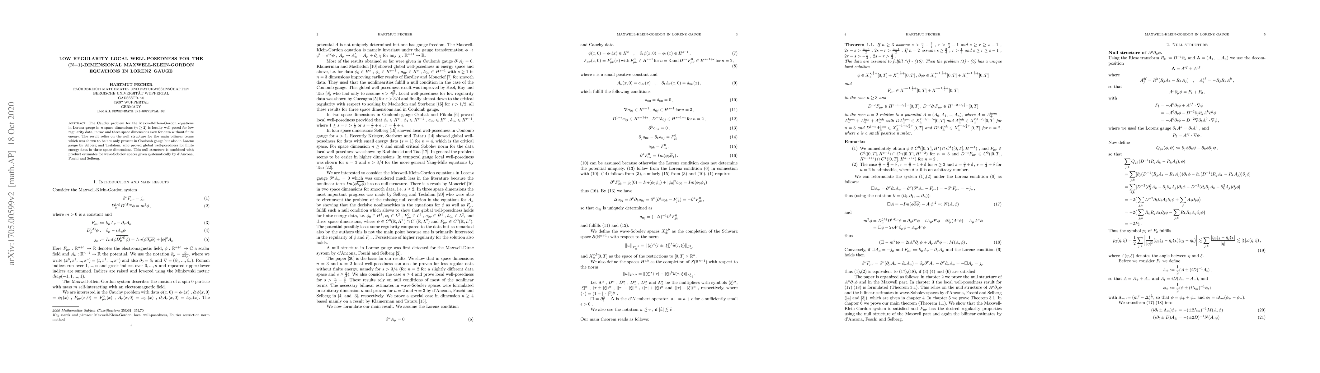Summary: The paper establishes local well-posedness for the Maxwell-Klein-Gordon equations in Lorenz gauge with low regularity initial data in two and three dimensions, even for data lacking finite energy. The result leverages the null structure of the main bilinear terms and utilizes product estimates from wave-Sobolev spaces.