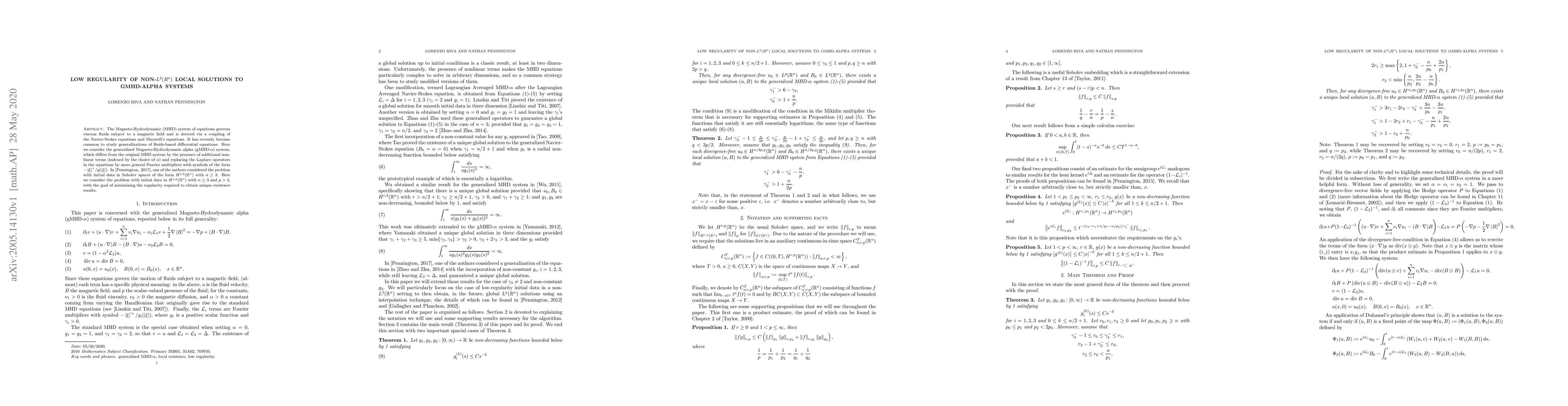 The Magneto-Hydrodynamic (MHD) system of equations governs viscous fluids subject to a magnetic field and is derived via a coupling of the Navier-Stokes equations and Maxwell's equations. Recently it has become common to study generalizations of fluids-based differential equations. Here we consider the generalized Magneto-Hydrodynamic alpha (gMHD-$\alpha$) system, which differs from the original MHD system by including an additional non-linear terms (indexed by $\alpha$), and replacing the Laplace operators by more general Fourier multipliers with symbols of the form $-|\xi|^\gamma / g(|\xi|)$. In a paper by Pennington, the problem was considered with initial data in the Sobolev space $H^{s,2}(\mathbb{R}^n)$ with $n \geq 3$. Here we consider the problem with initial data in $H^{s,p}(\mathbb{R}^n)$ with $n \geq 3$ and $p > 2$. Our goal is to minimize the regularity required for obtaining uniqueness of a solution.