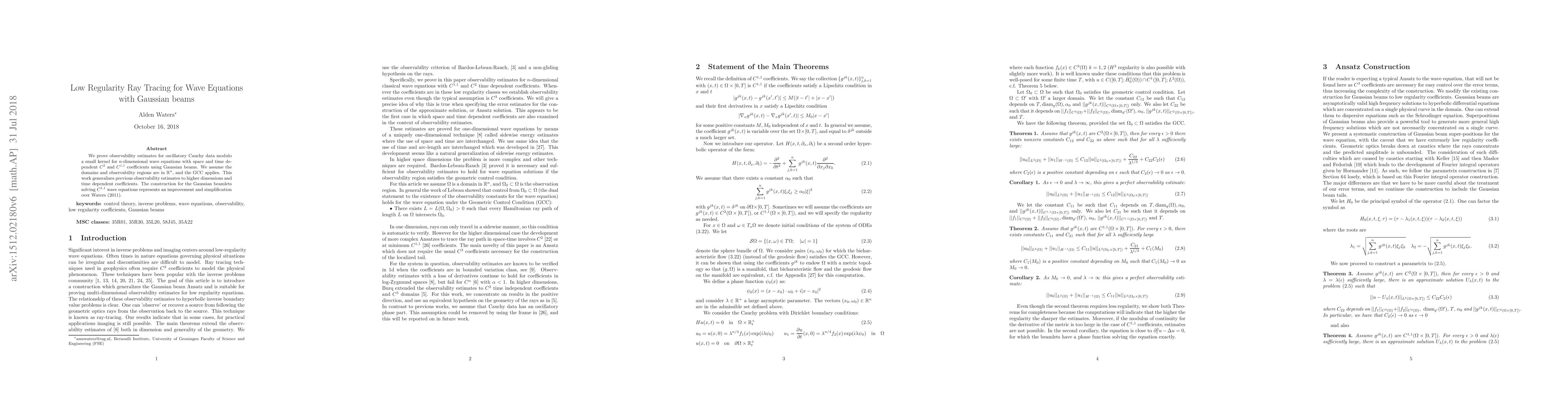 We prove observability estimates for oscillatory Cauchy data modulo a small kernel for $n$-dimensional wave equations with space and time dependent $C^2$ and $C^{1,1}$ coefficients using Gaussian beams. We assume the domains and observability regions are in $\mathbb{R}^n$, and the GCC applies. This work generalizes previous observability estimates to higher dimensions and time dependent coefficients. The construction for the Gaussian beamlets solving $C^{1,1}$ wave equations represents an improvement and simplification over Waters (2011).