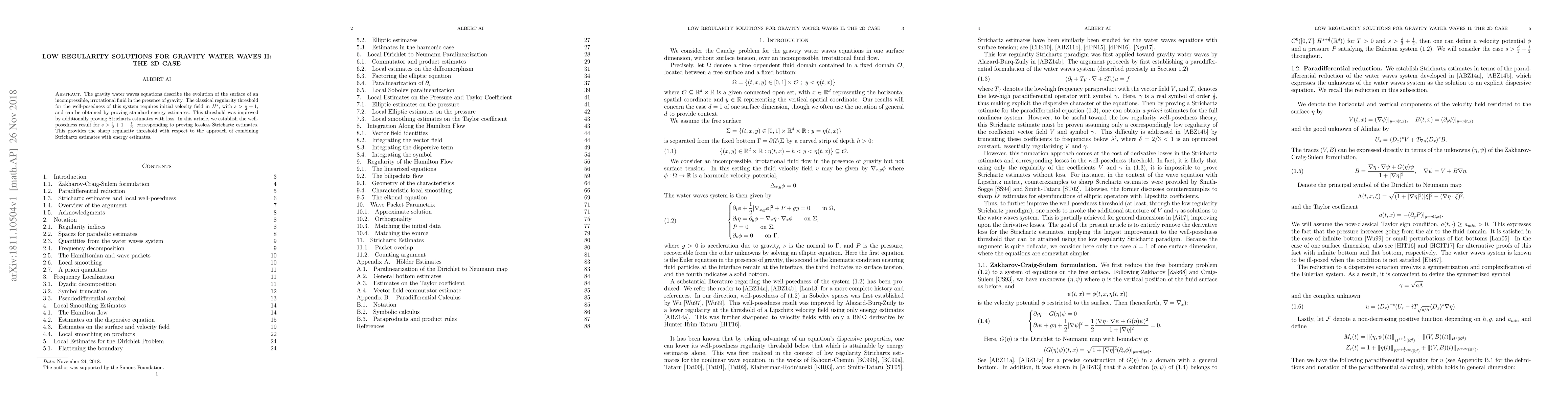 Researchers improved the regularity threshold for gravity water waves equations, establishing well-posedness with a sharper limit, and proving lossless Strichartz estimates to achieve this.