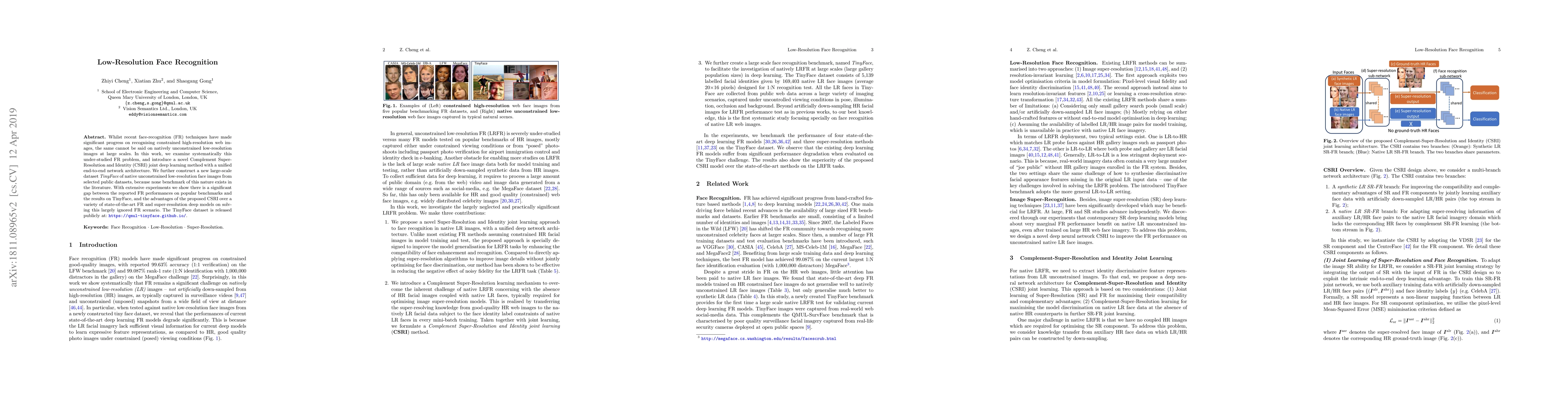 This paper introduces a novel joint deep learning method, CSRI, for low-resolution face recognition, addressing the significant gap in performance for unconstrained low-resolution images. It also presents the TinyFace dataset, a new benchmark for this under-studied problem, demonstrating the effectiveness of CSRI over existing models.