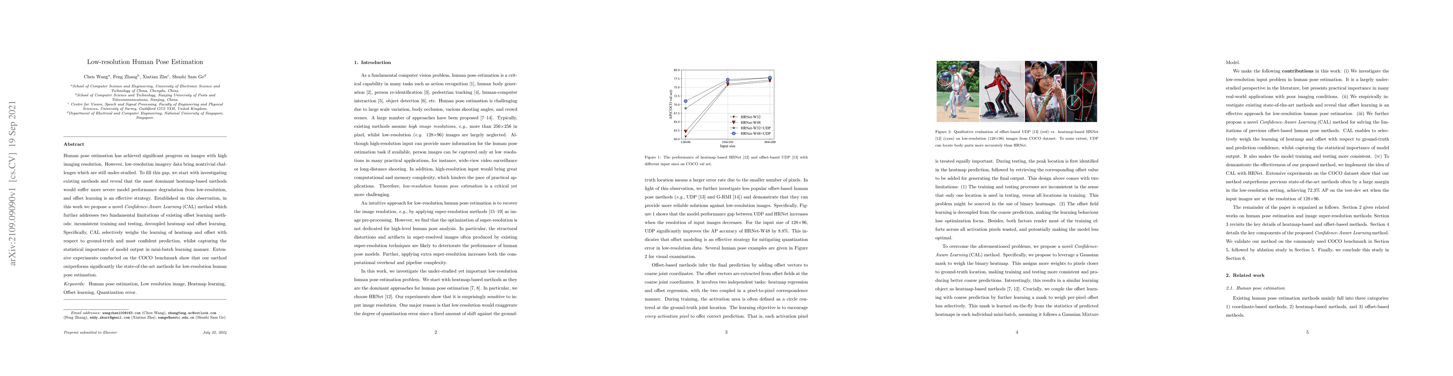A new method called Confidence-Aware Learning (CAL) is proposed for low-resolution human pose estimation, outperforming state-of-the-art methods on the COCO benchmark.