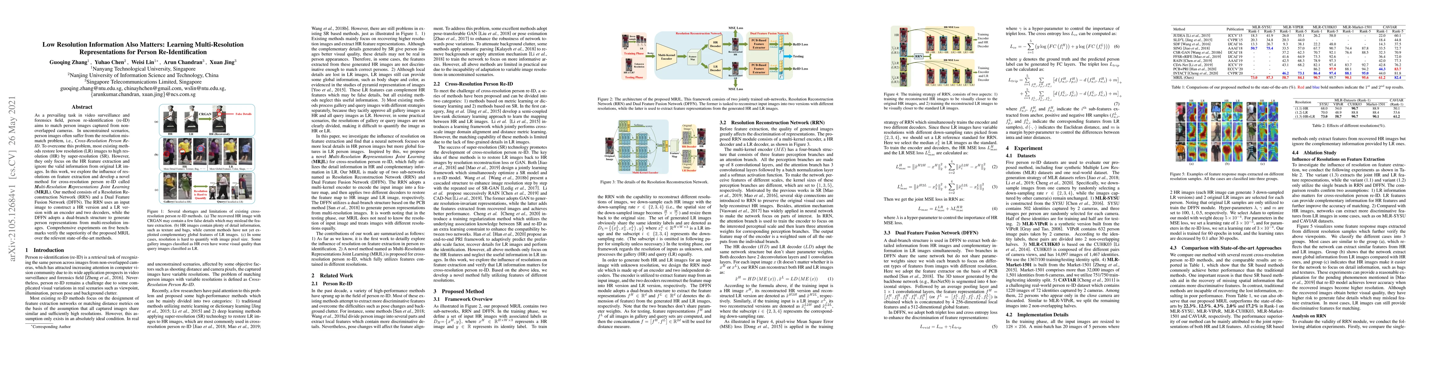 This paper proposes a novel method called Multi-Resolution Representations Joint Learning (MRJL) to address cross-resolution person re-identification challenges. It utilizes a Resolution Reconstruction Network (RRN) and a Dual Feature Fusion Network (DFFN) to extract features from both high and low resolution images, enhancing performance over existing methods that focus solely on high resolution features.