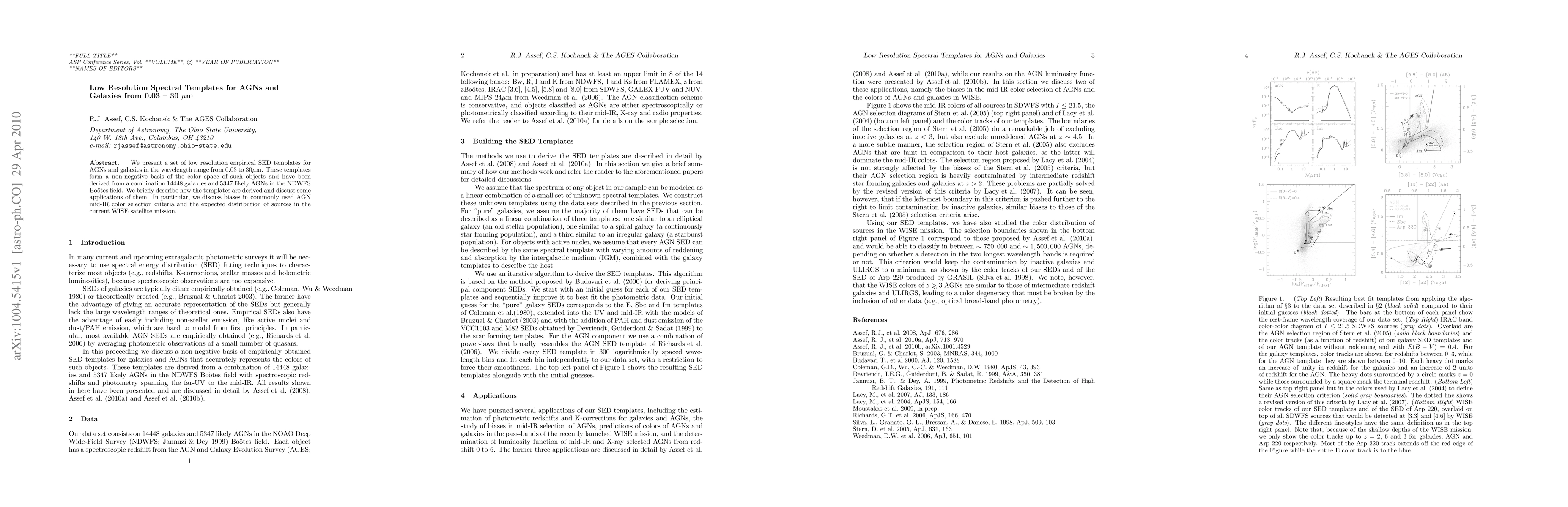 We present a set of low resolution empirical SED templates for AGNs and galaxies in the wavelength range from 0.03 to 30 microns. These templates form a non-negative basis of the color space of such objects and have been derived from a combination 14448 galaxies and 5347 likely AGNs in the NDWFS Bootes field. We briefly describe how the templates are derived and discuss some applications of them. In particular, we discuss biases in commonly used AGN mid-IR color selection criteria and the expected distribution of sources in the current WISE satellite mission.