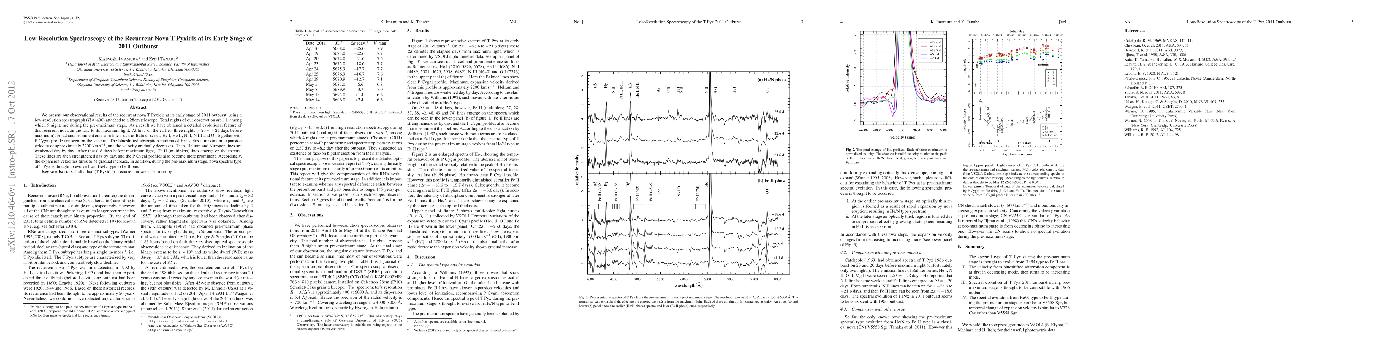 We present our observational results of the recurrent nova T Pyxidis at its early stage of 2011 outburst, using a low-resolution spectrograph ($R\approx400$) attached to a 28cm telescope. Total nights of our observation are 11, among which 9 nights are during the pre-maximum stage. As a result we have obtained a detailed evolutional feature of this recurrent nova on the way to its maximum light. At first, on the earliest three nights ($-25 \sim -21$ days before maximum), broad and prominent emission lines such as Balmer series, He I, He II, N II, N III and O I together with P Cygni profile are seen on the spectra. The blueshifted absorption minima of H$\alpha$ yields a maximum expansion velocity of approximately 2200 km s$^{-1}$, and the velocity gradually decreases. Then, Helium and Nitrogen lines are weakened day by day. After that (18 days before maximum light), Fe II (multiplets) lines emerge on the spectra. These lines are then strengthened day by day, and the P Cygni profiles also become more prominent. Accordingly, the expansion velocities turns to be gradual increase. In addition, during the pre-maximum stage, nova spectral type of T Pyx is thought to evolve from He/N type to Fe II one.