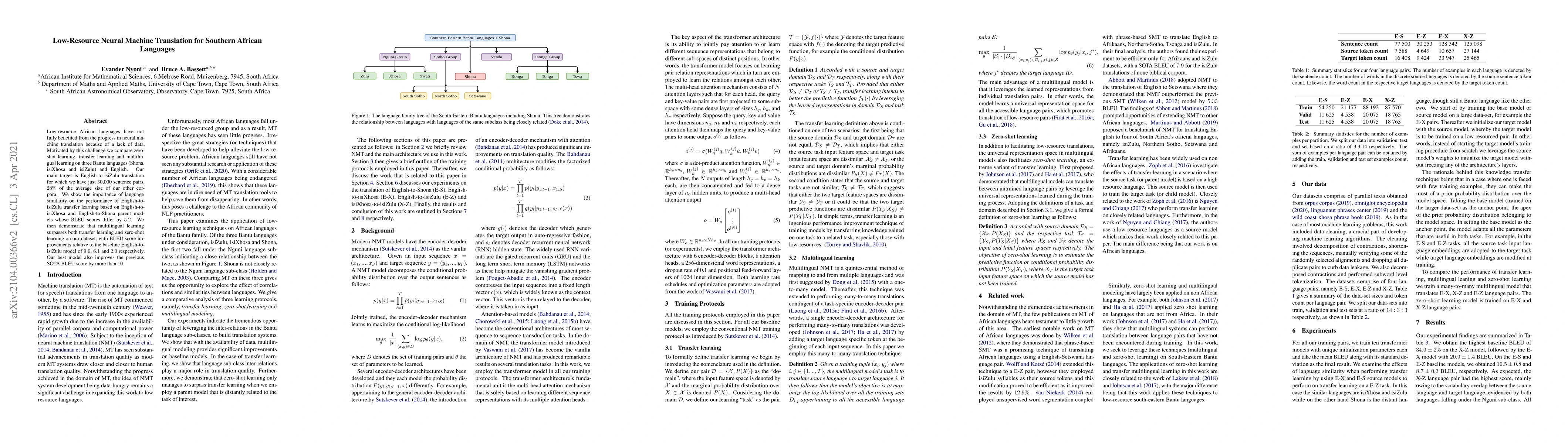 Low-resource African languages have not fully benefited from the progress in neural machine translation because of a lack of data. Motivated by this challenge we compare zero-shot learning, transfer learning and multilingual learning on three Bantu languages (Shona, isiXhosa and isiZulu) and English. Our main target is English-to-isiZulu translation for which we have just 30,000 sentence pairs, 28% of the average size of our other corpora. We show the importance of language similarity on the performance of English-to-isiZulu transfer learning based on English-to-isiXhosa and English-to-Shona parent models whose BLEU scores differ by 5.2. We then demonstrate that multilingual learning surpasses both transfer learning and zero-shot learning on our dataset, with BLEU score improvements relative to the baseline English-to-isiZulu model of 9.9, 6.1 and 2.0 respectively. Our best model also improves the previous SOTA BLEU score by more than 10.
