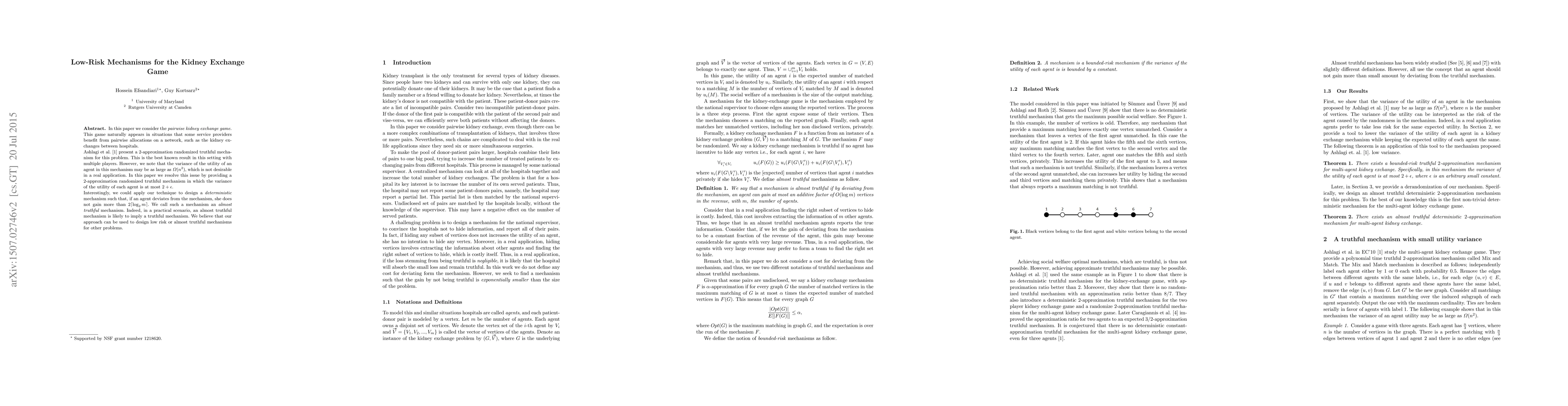 In this paper we consider the pairwise kidney exchange game. This game naturally appears in situations that some service providers benefit from pairwise allocations on a network, such as the kidney exchanges between hospitals. Ashlagi et al. present a $2$-approximation randomized truthful mechanism for this problem. This is the best known result in this setting with multiple players. However, we note that the variance of the utility of an agent in this mechanism may be as large as $\Omega(n^2)$, which is not desirable in a real application. In this paper we resolve this issue by providing a $2$-approximation randomized truthful mechanism in which the variance of the utility of each agent is at most $2+\epsilon$. Interestingly, we could apply our technique to design a deterministic mechanism such that, if an agent deviates from the mechanism, she does not gain more than $2\lceil \log_2 m\rceil$. We call such a mechanism an almost truthful mechanism. Indeed, in a practical scenario, an almost truthful mechanism is likely to imply a truthful mechanism. We believe that our approach can be used to design low risk or almost truthful mechanisms for other problems.