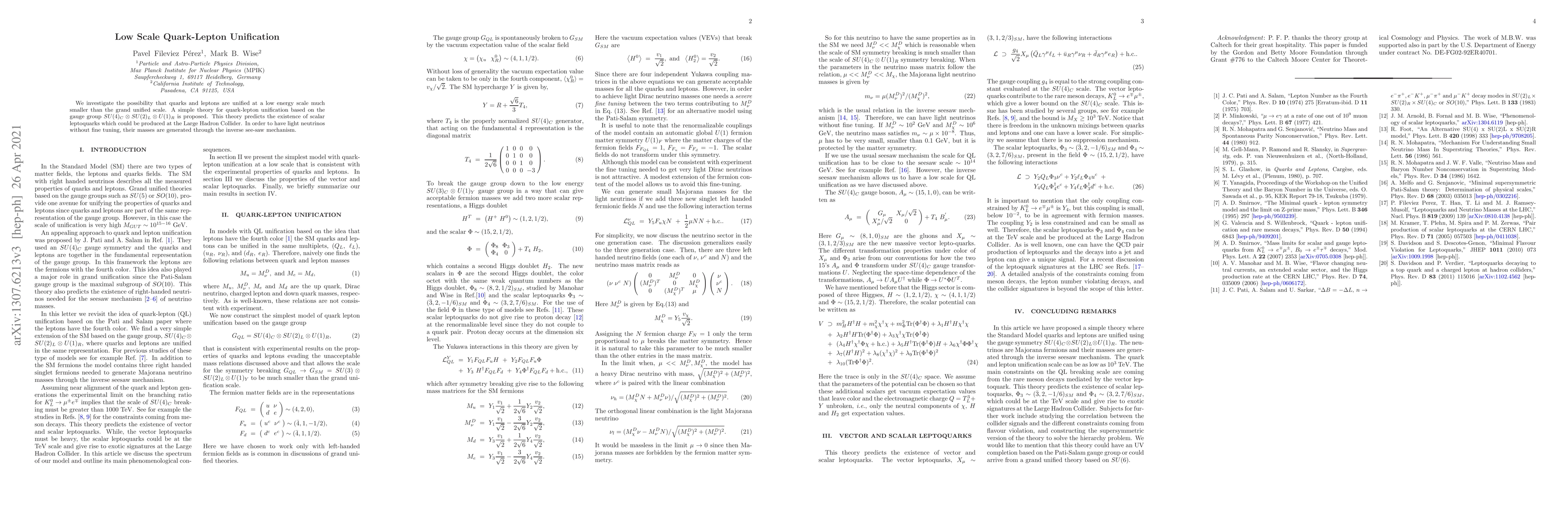 Researchers propose a new theory for quark-lepton unification at a low energy scale, predicting the existence of scalar leptoquarks that could be detected at the Large Hadron Collider, and generating light neutrinos without fine-tuning through the inverse see-saw mechanism.