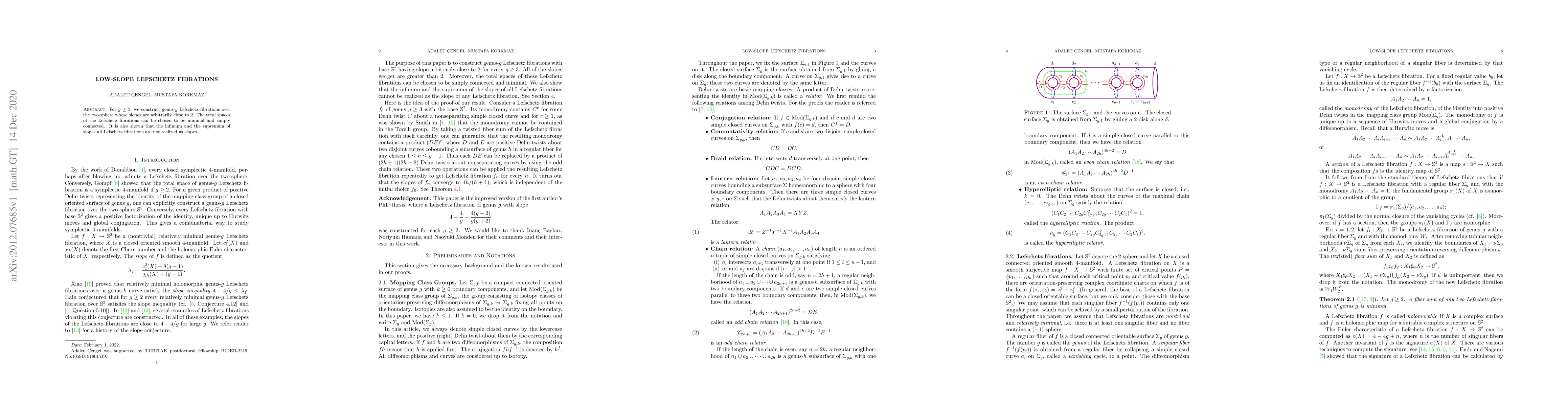 This paper constructs genus-$g$ Lefschetz fibrations over the two-sphere with slopes arbitrarily close to $2$ for $g\geq 3$, ensuring minimal and simply connected total spaces, while proving that neither the infimum nor supremum of slopes is realized.