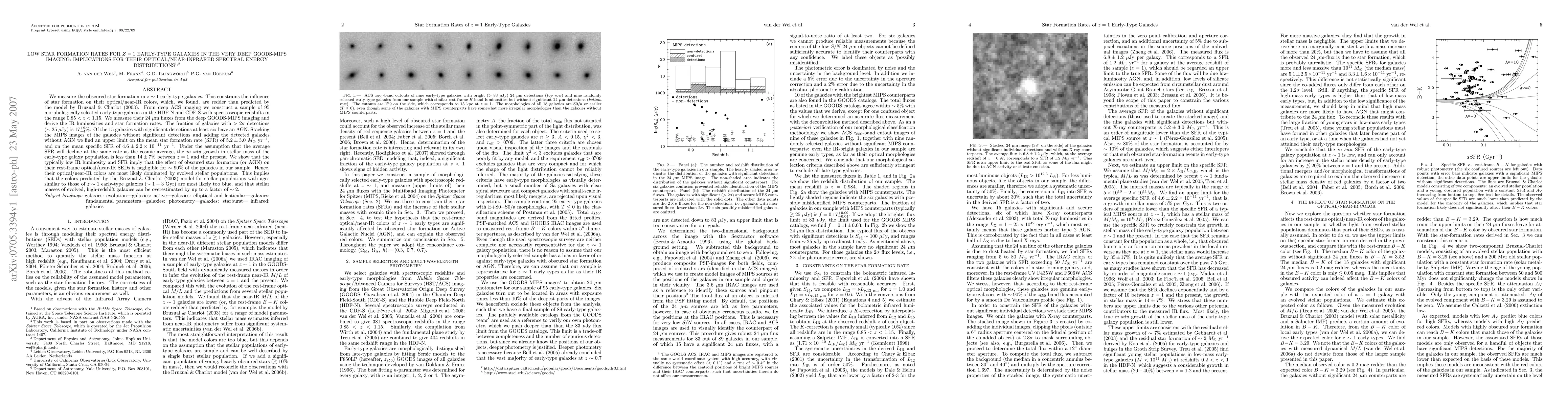 The study measures low star formation rates in z~1 early-type galaxies using deep ACS and GOODS-MIPS imaging, finding that their optical/near-IR colors are redder than models predict, likely due to evolved stellar populations rather than obscured star formation or AGN activity. This suggests stellar mass estimates for high-redshift galaxies could be overstated by up to a factor of 2.