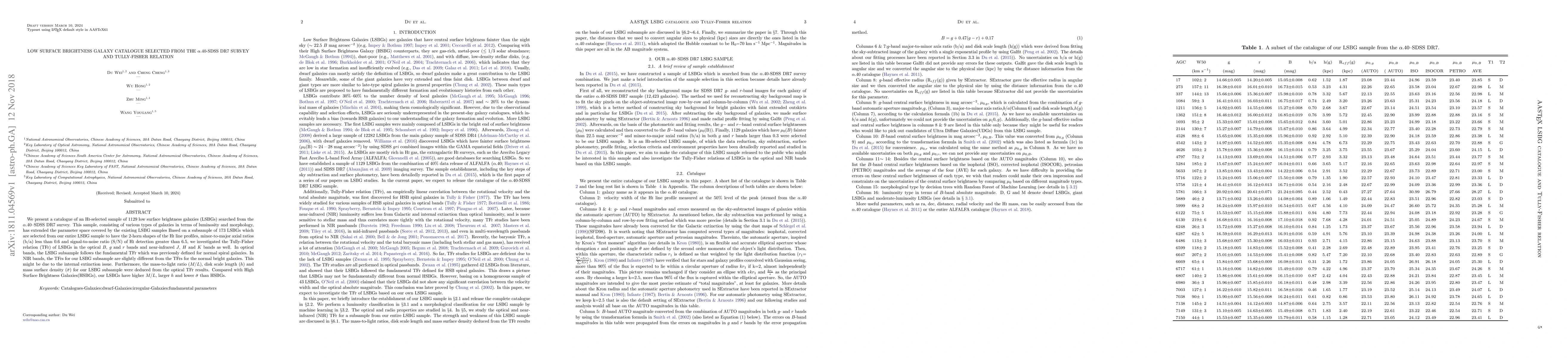 A study of 1129 low surface brightness galaxies found that they have higher mass-to-light ratios, larger disk scale lengths, and lower surface densities compared to high surface brightness galaxies.