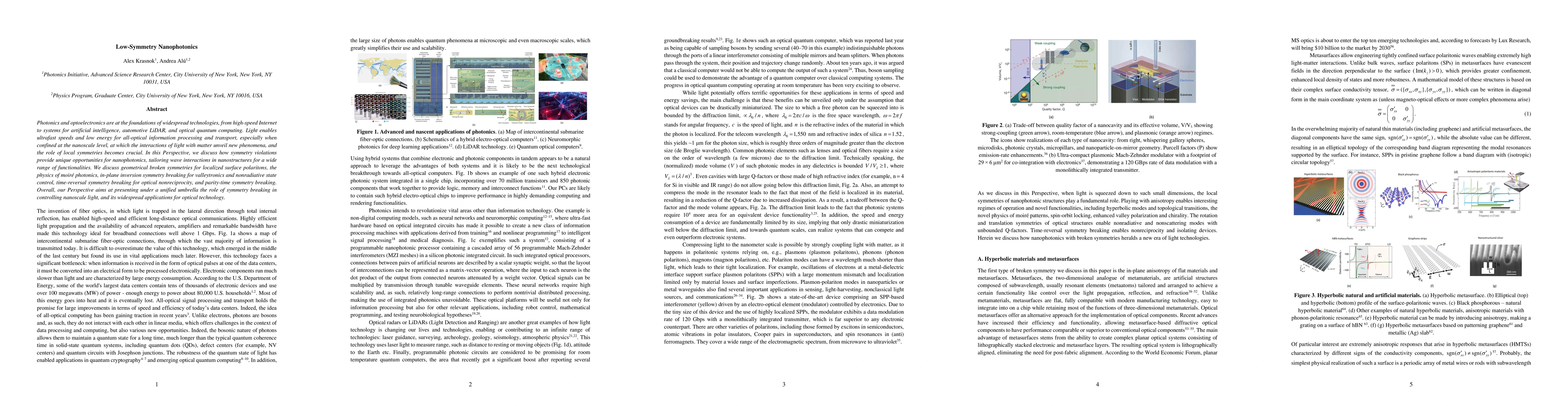 This paper explores how breaking symmetries in nanophotonics enables unique opportunities for controlling light interactions, leading to new functionalities and applications in optical technology.