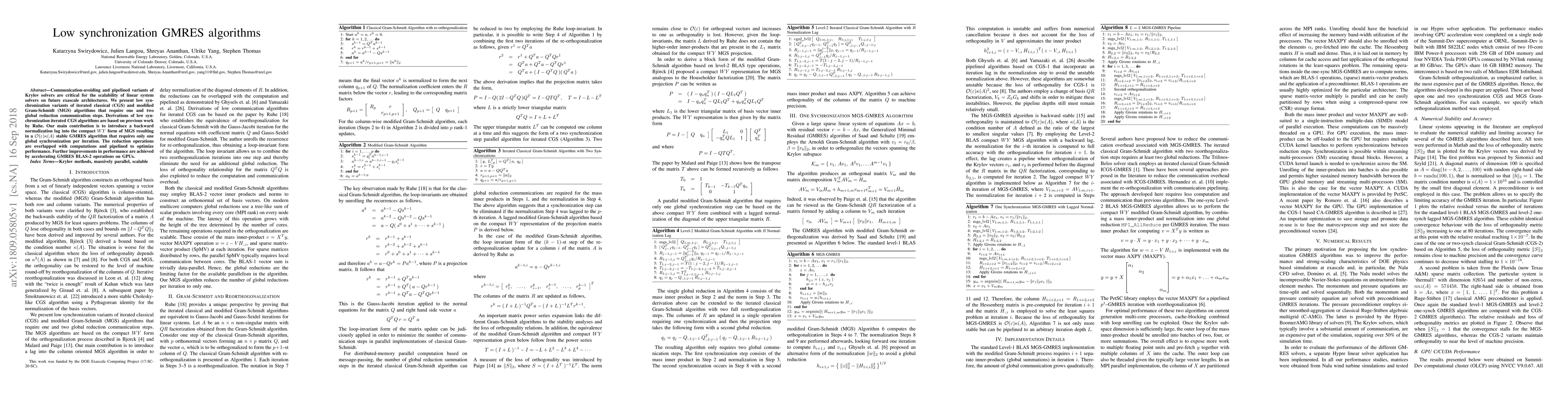 Researchers developed low-synchronization variants of Krylov solvers to improve scalability on future exascale architectures, achieving ${ m O}( ext{θ}) ext{θ}(A)$ stability with one global reduction per iteration.