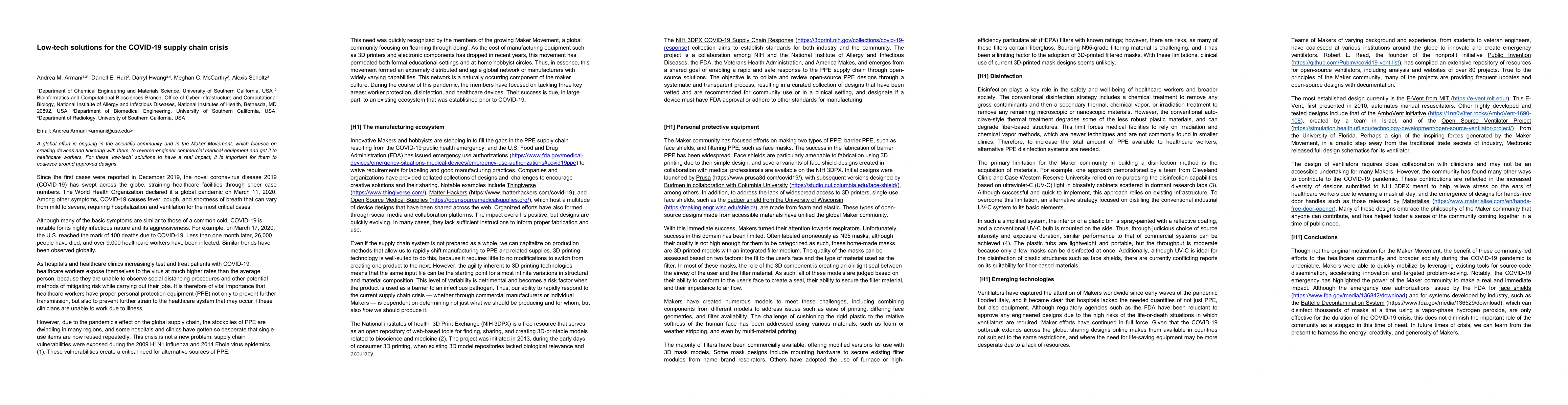 A global effort is ongoing in the scientific community and in the Maker Movement, which focuses on creating devices and tinkering with them, to reverse engineer commercial medical equipment and get it to healthcare workers. For these low-tech solutions to have a real impact, it is important for them to coalesce around approved designs.