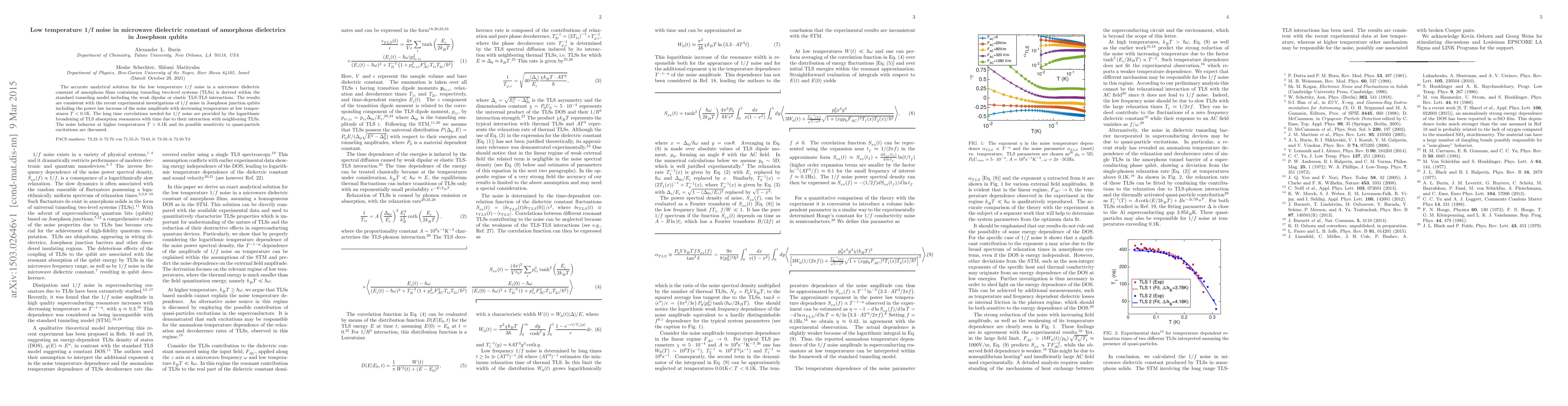The accurate analytical solution for the low temperature $1/f$ noise in a microwave dielectric constant of amorphous films containing tunneling two-level systems (TLSs) is derived within the standard tunneling model including the weak dipolar or elastic TLS-TLS interactions. The results are consistent with the recent experimental investigations of $1/f$ noise in Josephson junction qubits including the power law increase of the noise amplitude with decreasing temperature at low temperatures $T<0.1$K. The long time correlations needed for $1/f$ noise are provided by the logarithmic broadening of TLS absorption resonances with time due to their interaction with neighboring TLSs. The noise behavior at higher temperatures $T>0.1$K and its possible sensitivity to quasi-particle excitations are discussed.