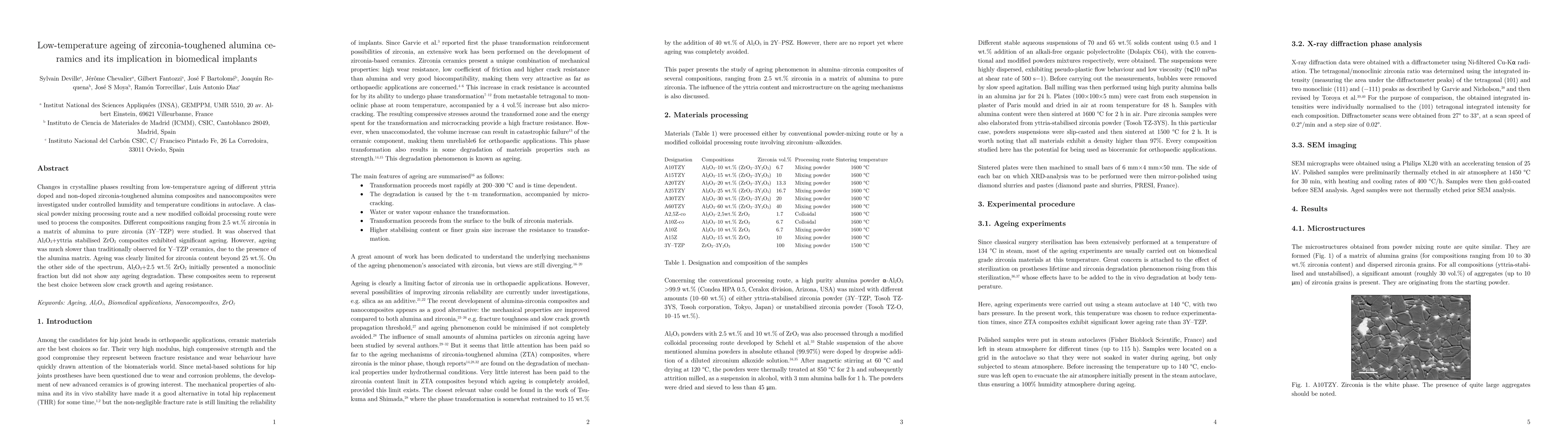 This study investigates low-temperature ageing of zirconia-toughened alumina ceramics, finding significant ageing in composites with lower zirconia content, but slower ageing in those with higher zirconia content, suggesting improved performance for biomedical implants.