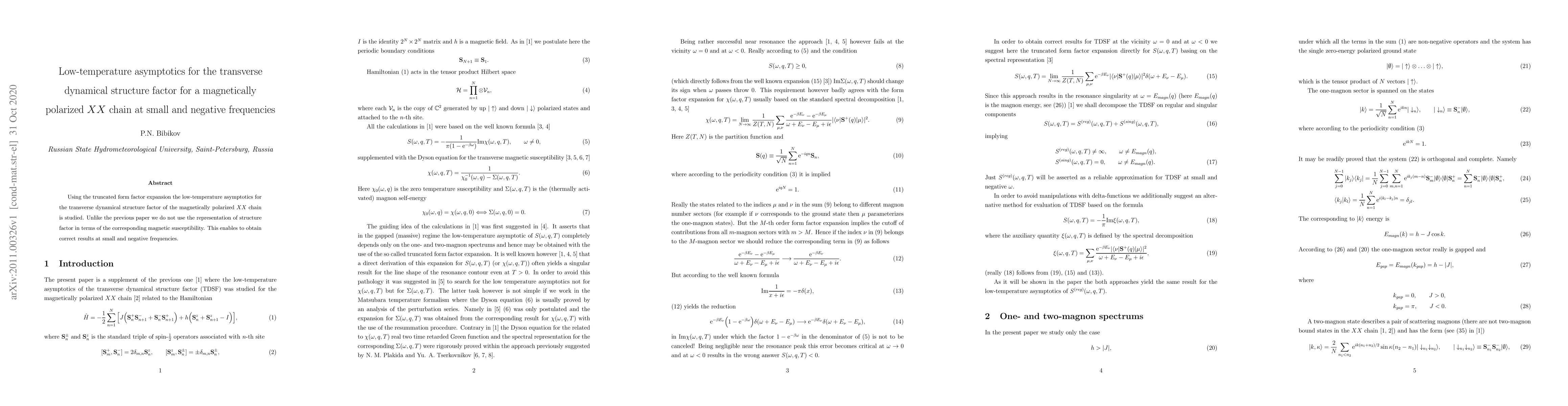 Researchers studied the transverse dynamical structure factor of a magnetically polarized XX chain at low temperatures, finding correct results at small and negative frequencies without relying on magnetic susceptibility.