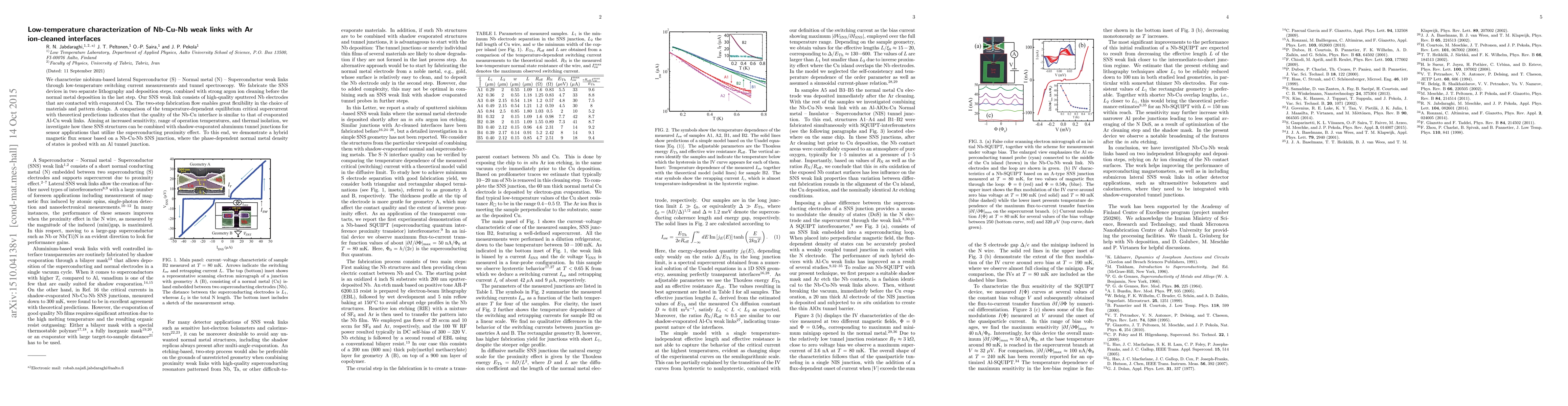 This paper characterizes Nb-Cu-Nb weak links with ion-cleaned interfaces, showing comparable interface quality to Al-Cu links. The study combines SNS devices with Al tunnel junctions to create a sensitive magnetic flux sensor, leveraging the superconducting proximity effect.