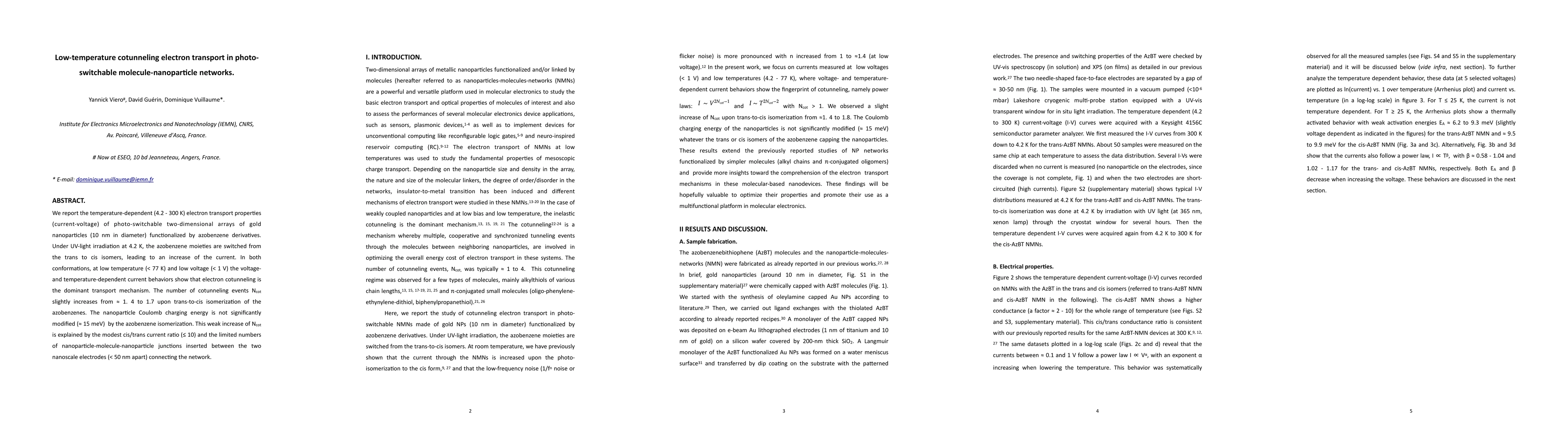 Researchers found that photo-switchable molecule-nanoparticle networks exhibit low-temperature cotunneling electron transport under UV-light irradiation, with a slight increase in the number of cotunneling events when switching from trans to cis isomers.