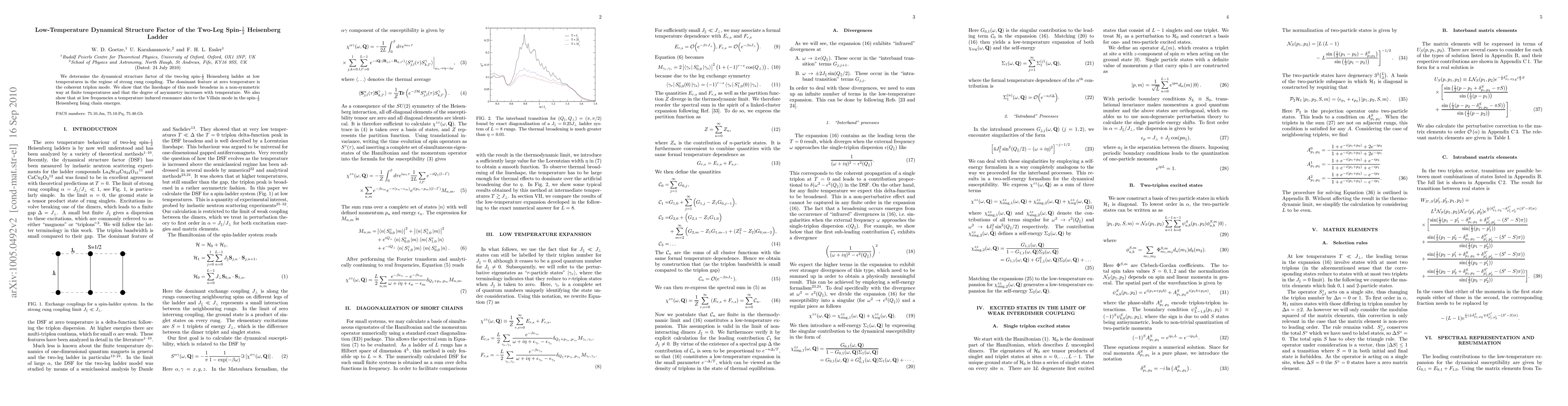 This study investigates the low-temperature dynamical structure factor of a two-leg spin-1/2 Heisenberg ladder, revealing a coherent triplon mode at zero temperature. The research finds that the triplon mode's lineshape broadens asymmetrically with increasing temperature, and a temperature-induced resonance similar to the Villain mode in spin-1/2 Heisenberg chains appears at low frequencies.