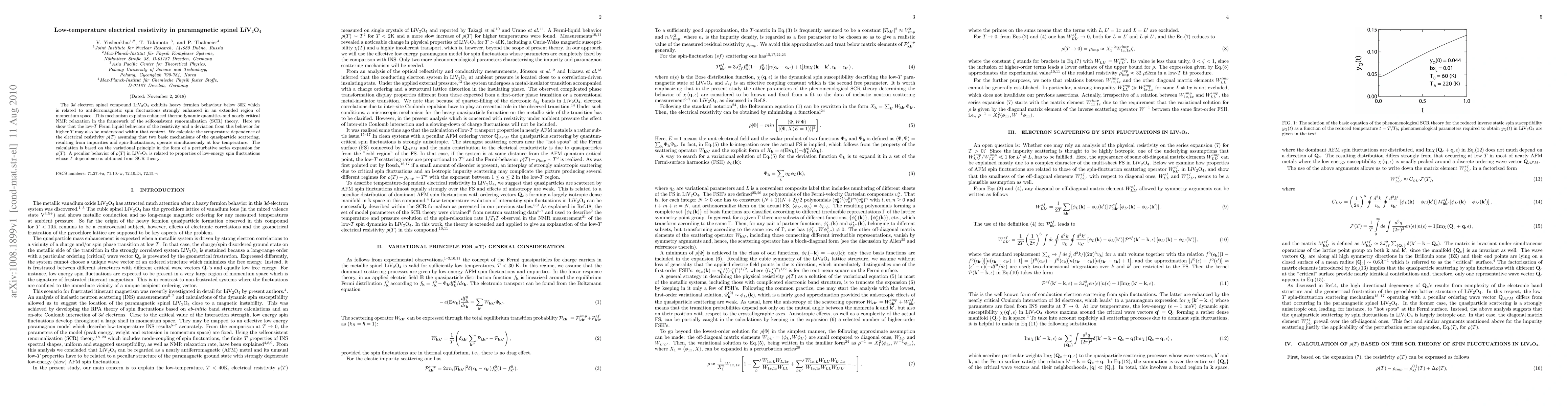 Researchers studied the electrical resistivity of LiV2O4 at low temperatures, finding that it behaves like a Fermi liquid due to antiferromagnetic spin fluctuations. The study used self-consistent renormalization theory to understand the temperature dependence of resistivity and its peculiar behavior.