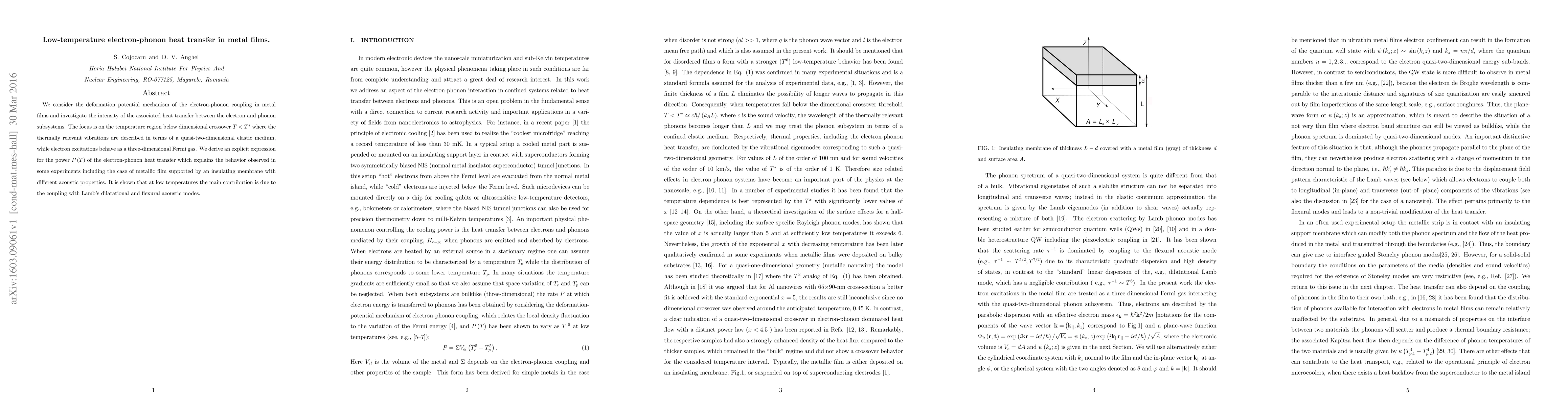 This paper investigates electron-phonon heat transfer in metal films at low temperatures, focusing on the deformation potential mechanism. It derives an expression for the heat transfer power, explaining experimental observations, and highlights the significant role of Lamb's acoustic modes in the process.