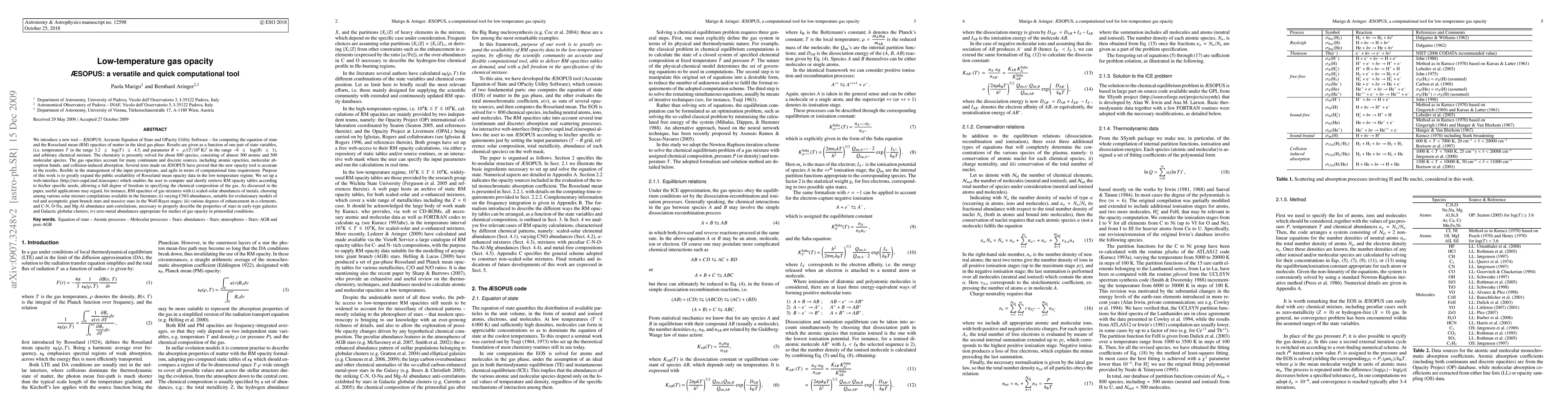 A new computational tool, AESOPUS, is introduced for calculating gas opacity at low temperatures, allowing users to specify various chemical compositions of the gas, including solar abundance variations and primordial conditions.