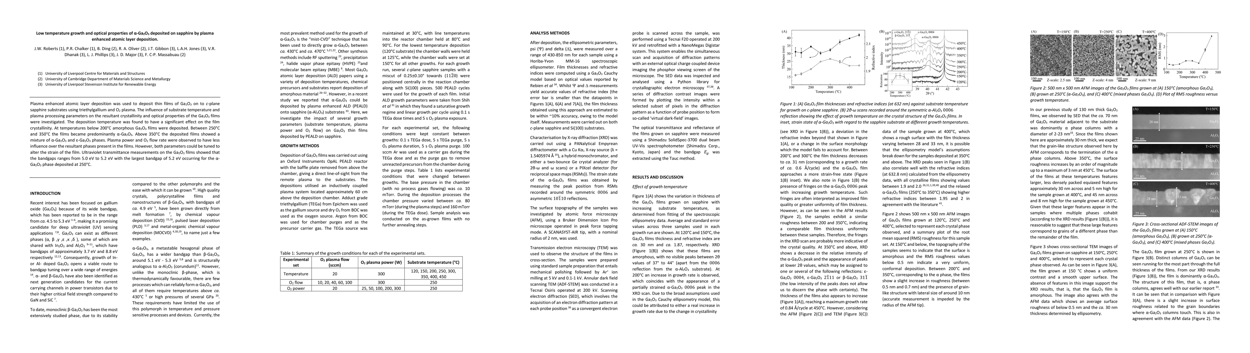 Researchers used plasma-enhanced atomic layer deposition to create thin films of Ga2O3 on sapphire substrates, finding that film crystallinity improved with increasing temperature, and the phase compositions and optical properties could be controlled by adjusting processing parameters.