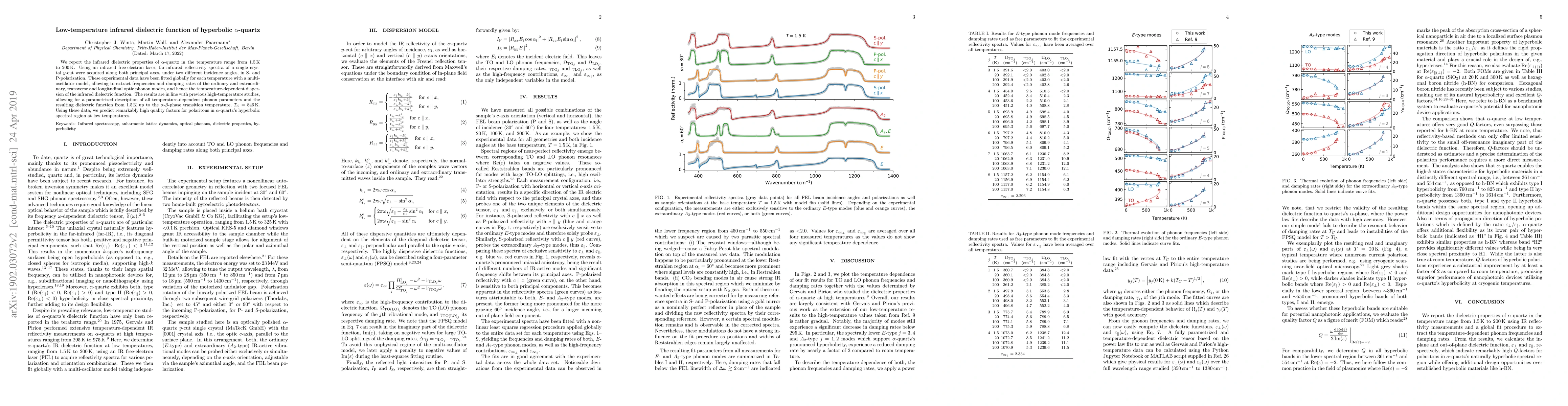 Researchers studied the infrared dielectric properties of alpha-quartz at low temperatures, revealing high-quality factors for polaritons in its hyperbolic spectral region.