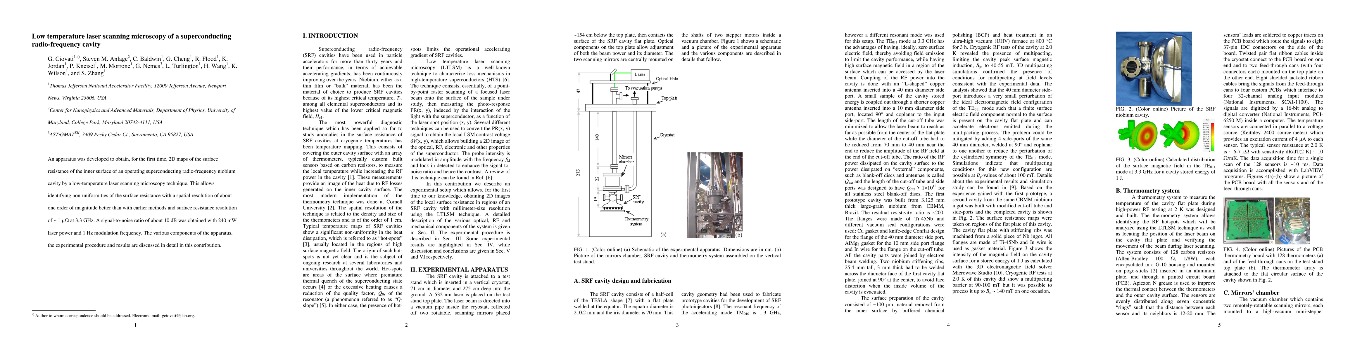 This paper presents a novel low-temperature laser scanning microscopy technique to create 2D maps of the surface resistance of a superconducting radio-frequency niobium cavity, achieving higher spatial resolution and better surface resistance resolution compared to previous methods. The apparatus demonstrates a signal-to-noise ratio of 10 dB with 240 mW laser power and 1 Hz modulation frequency.