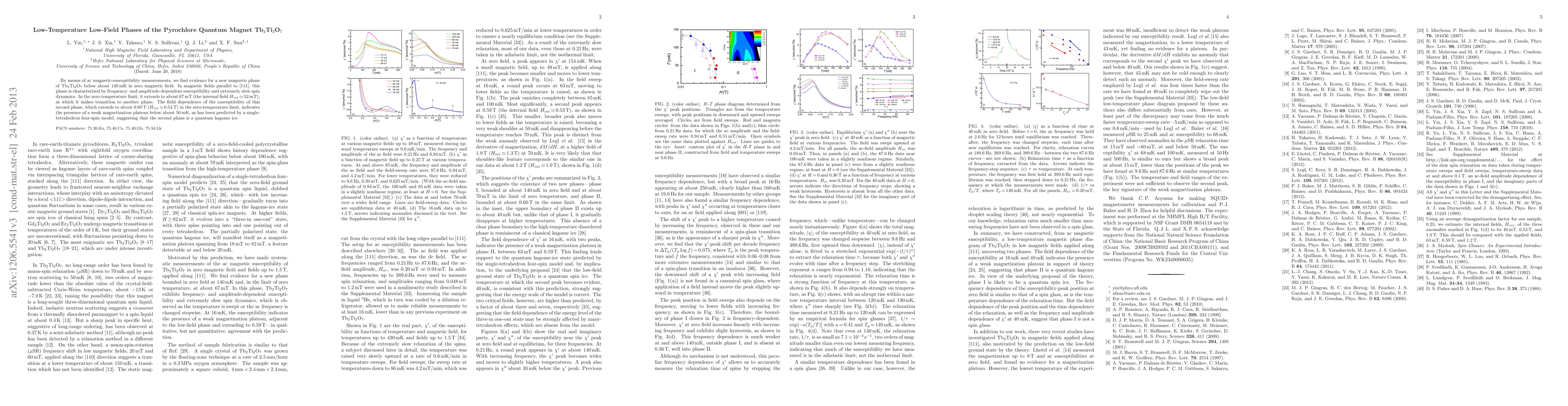 By means of ac magnetic-susceptibility measurements, we find evidence for a new magnetic phase of Tb$_2$Ti$_2$O$_7$ below about 140 mK in zero magnetic field. In magnetic fields parallel to [111], this phase---exhibiting frequency- and amplitude-dependent susceptibility and an extremely slow spin dynamics---extends to about 70 mT, at which it gives way to another phase. The field dependence of the susceptibility of this second phase, which extends to about 0.6 T, indicates the presence of a weak magnetization plateau below 50 mK, as has been predicted by a single-tetrahedron four-spin model, giving support to the underlying proposal that the disordered low-field ground state of Tb$_2$Ti$_2$O$_7$ is a quantum spin ice.