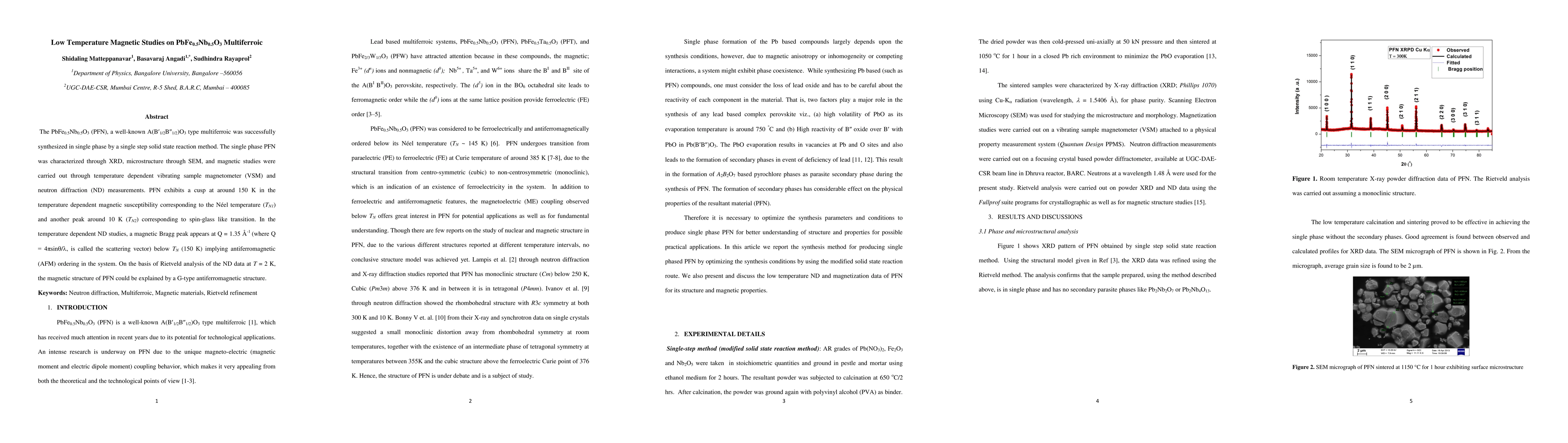 Researchers successfully synthesized a multiferroic material called PbFe0.5Nb0.5O3, which exhibits two distinct magnetic transitions at 150K and 10K, indicating antiferromagnetic ordering and spin-glass behavior.