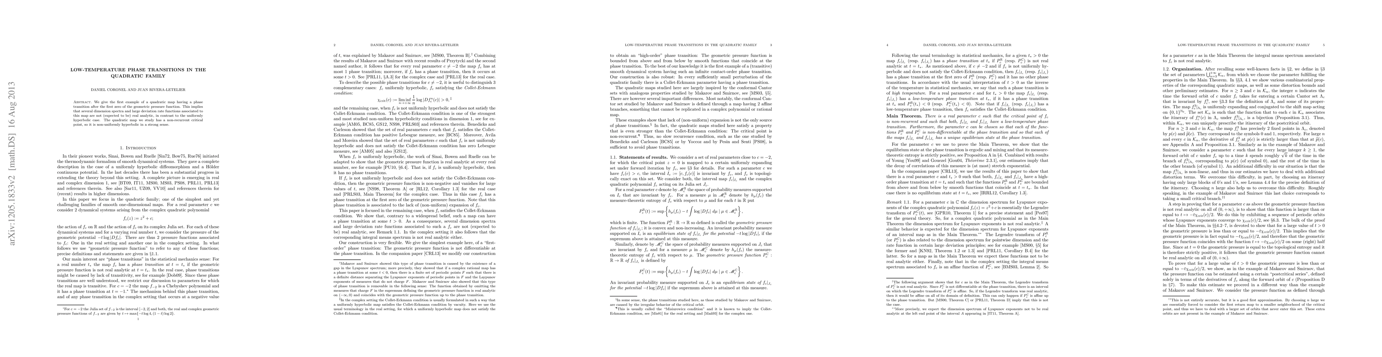 We give the first example of a quadratic map having a phase transition after the first zero of the geometric pressure function. This implies that several dimension spectra and large deviation rate functions associated to this map are not (expected to be) real analytic, in contrast to the uniformly hyperbolic case. The quadratic map we study has a non-recurrent critical point, so it is non-uniformly hyperbolic in a strong sense.