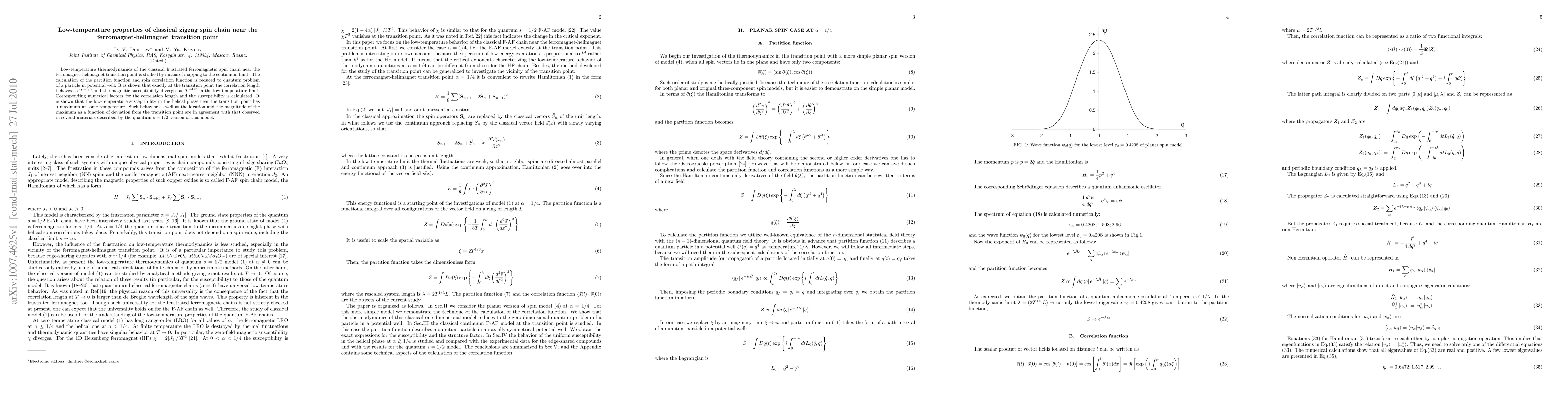 This paper investigates the low-temperature thermodynamic properties of a classical zigzag spin chain near the ferromagnet-helimagnet transition, revealing that the correlation length scales as $T^{-1/3}$ and the magnetic susceptibility diverges as $T^{-4/3}$ at the transition point. The findings match observations in materials described by the quantum $s=1/2$ version of the model.