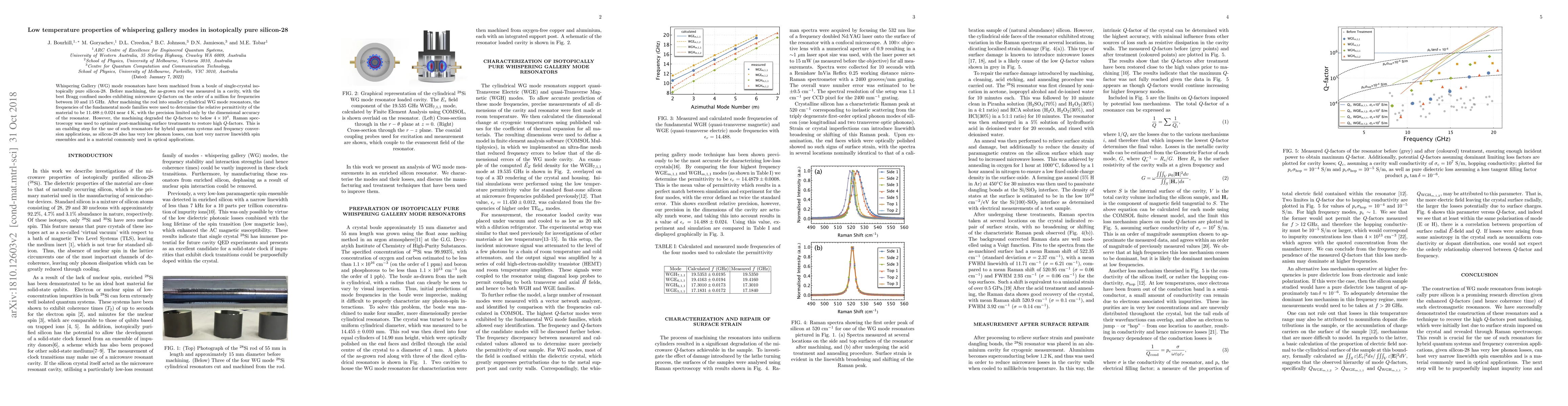 This paper investigates whispering gallery mode resonators made from isotopically pure silicon-28, achieving high microwave $Q$-factors and determining the relative permittivity at low temperatures. Post-machining surface treatments restored high $Q$-factors, highlighting the material's potential for quantum systems and frequency conversion.