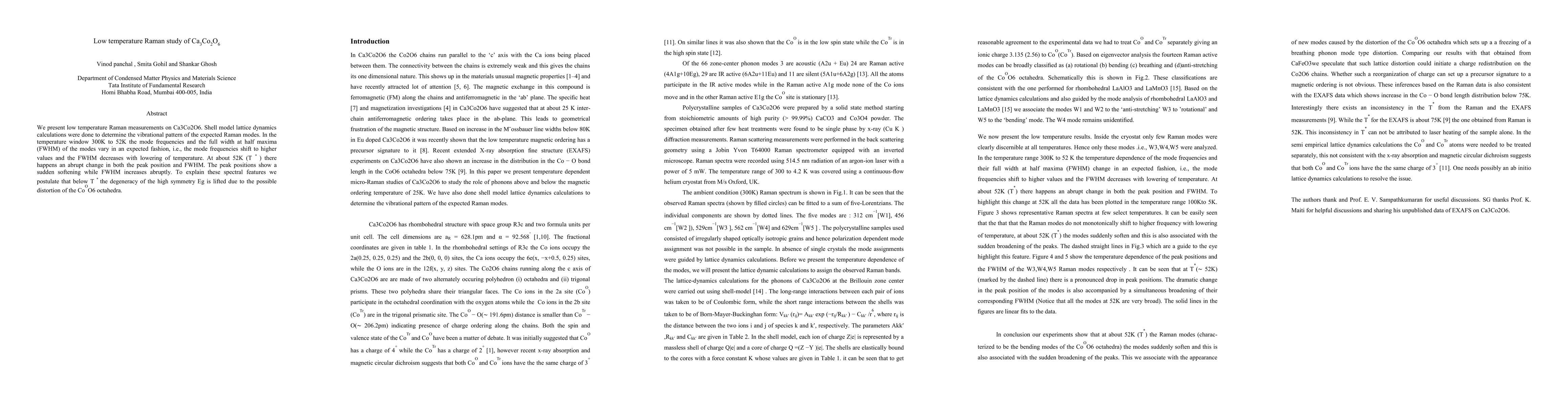 Researchers studied Ca3Co2O6's Raman modes at low temperatures, finding a sudden change in spectral features at around 52K, which may indicate lifting of symmetry due to CoOO6 octahedra distortion.