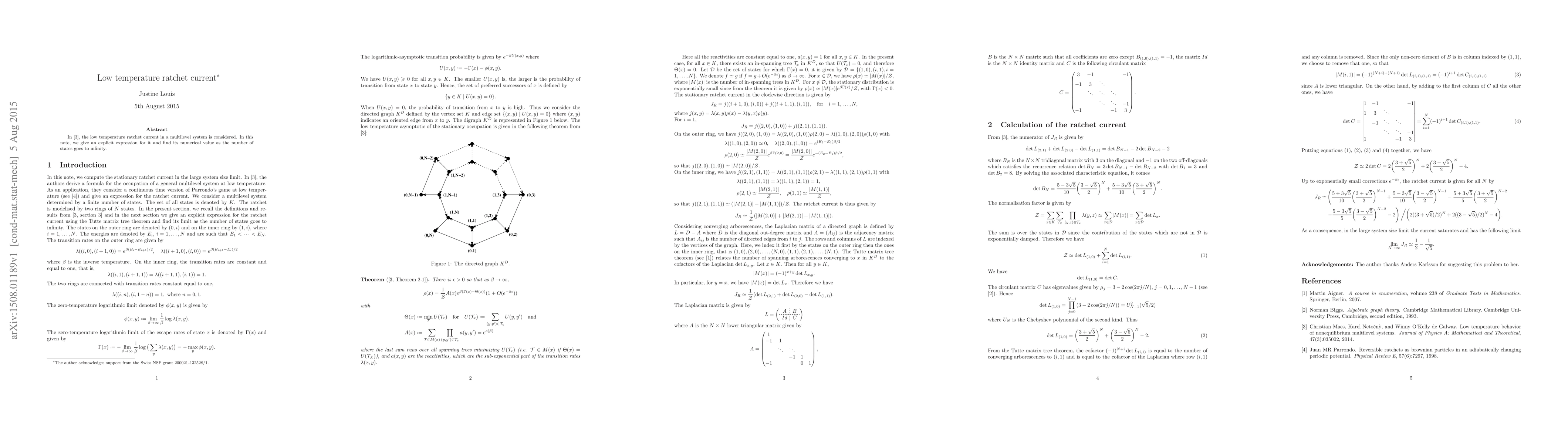 In [3], the low temperature ratchet current in a multilevel system is considered. In this note, we give an explicit expression for it and find its numerical value as the number of states goes to infinity.
