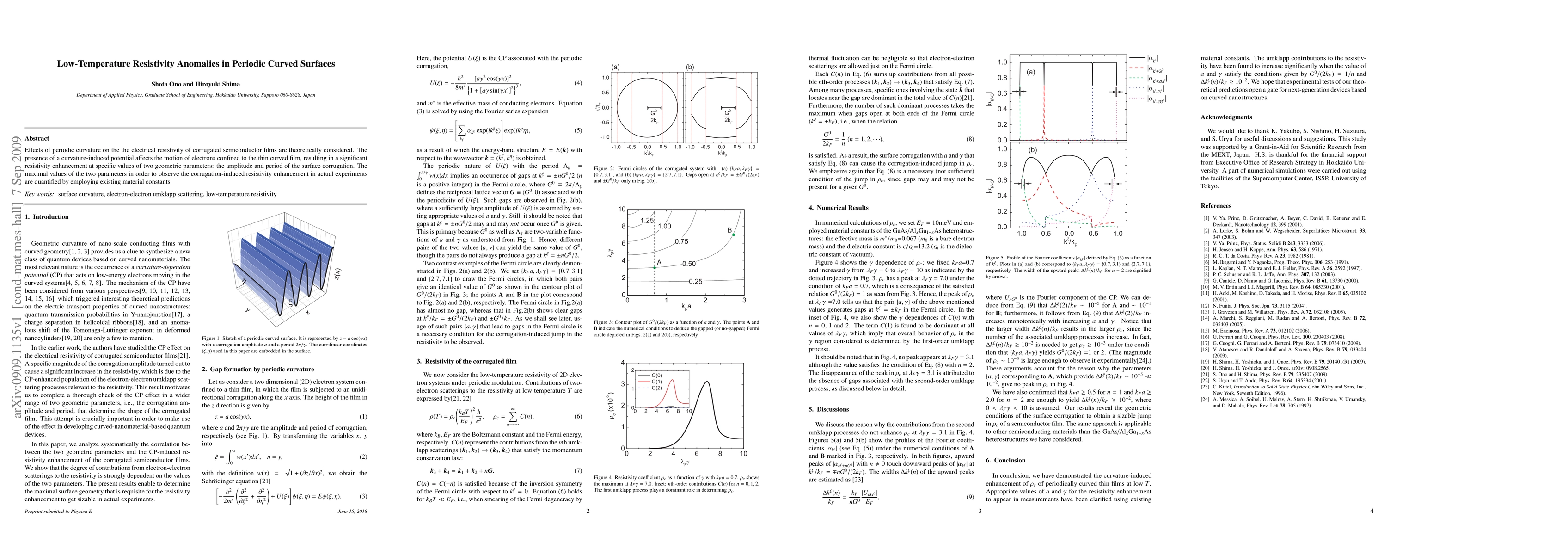 This paper theoretically investigates how periodic curvature in semiconductor films influences electrical resistivity, revealing significant enhancements at specific corrugation amplitudes and periods. The study quantifies the maximal values for these parameters to observe the resistivity enhancement using existing material constants.
